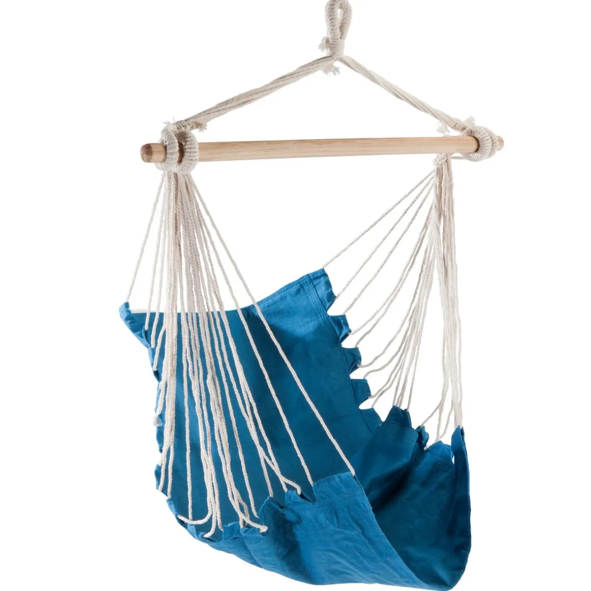 Hamac fauteuil à suspendre – Bois et textile – 130x100cm – Marron