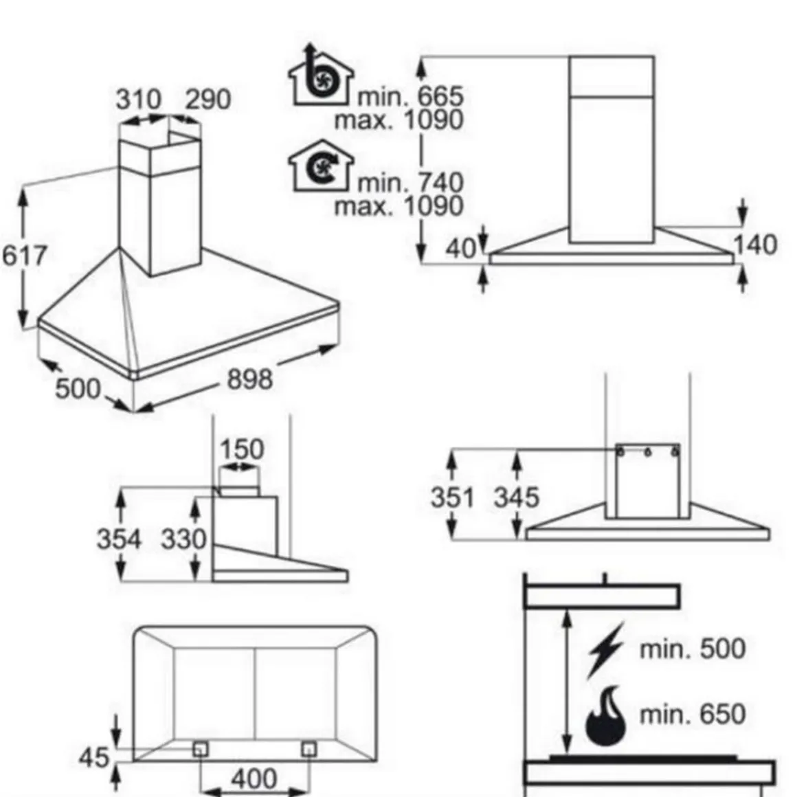 Dimensions H / L / P (mm) : 665min -1090maxi /898/500.