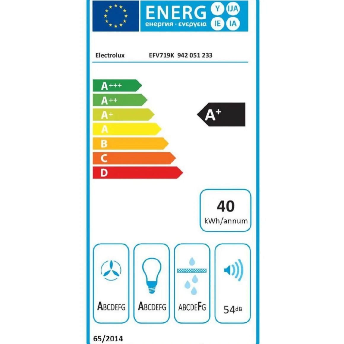 | Consommation d’énergie | Classe d’efficacité énergétique: A+, Consommation annuelle d’énergie en kWh: 40 kWh, Classe d’efficacité d’évacuation de la vapeur et fumées: A, Classe d’efficacité de l’éclairage: A, Classe d’efficacité de filtration des graisses: F | |