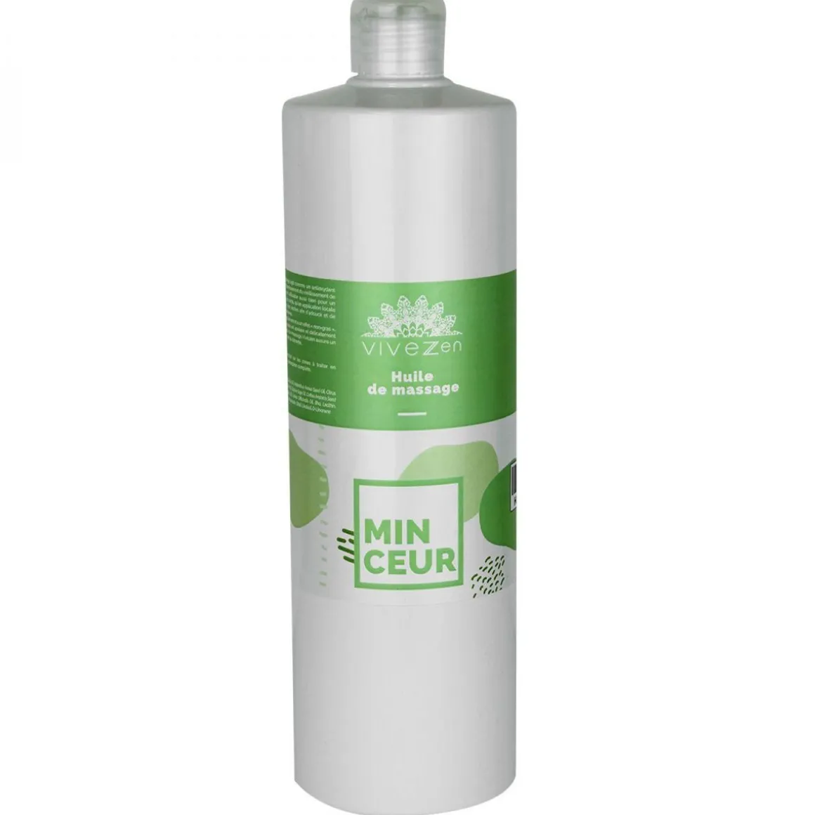 Les huiles végétales présentes dans l’huile de massage Minceur Vivezen sont associées à la fonction réductrice, stimulante et drainante des lipides. Grâce à sa forte teneur en extrait de café et en huiles essentielles telles que la sauge, le citron et la mandarine, l’huile de massage augmente efficacement les bienfaits du massage. Elle est utilisable aussi bien pour un massage total du corps, qu’en application locale sur des parties très sèches de votre corps afin d’adoucir et de réhydrater l’épiderme. Votre peau sera apaisée et délicatement parfumée. L’huile de massage Vivezen assure un véritable moment de détente. La contenance du flacon est de 1 Litre. La durée de conservation est de 30 mois flacon non ouvert ou 6 mois après ouverture. Ne pas exposer à la lumière et à conserver à température ambiante. Cette huile est adaptée aux types de peaux sensibles ou peaux sèches. Ses effets sont : Hydratante, nourrissante, assouplissante et anti oxydante et drainante. Ne laisse pas de film gras et pénètre rapidement.