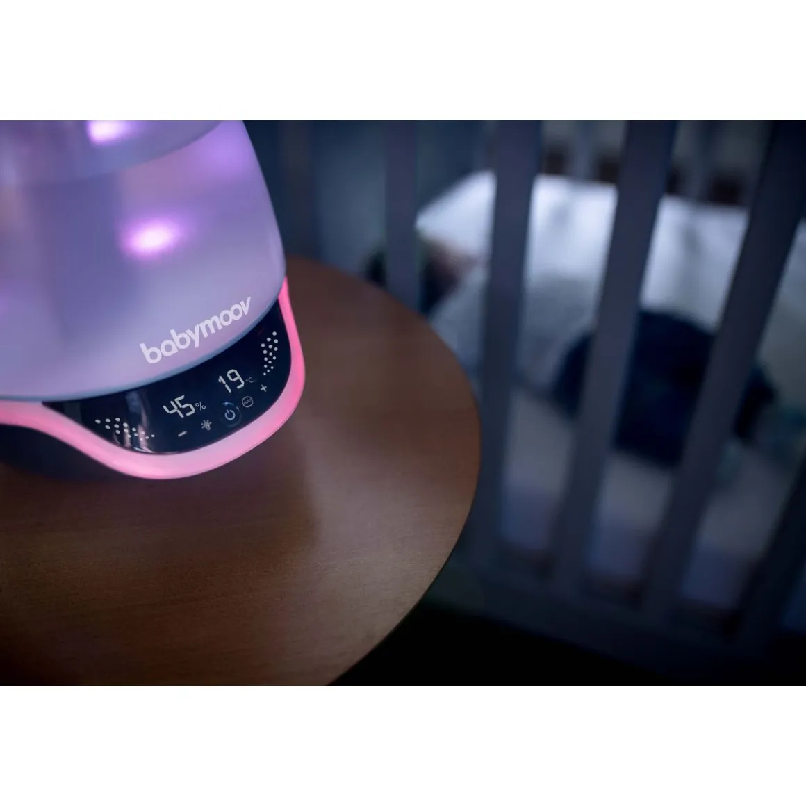 L’humidificateur Hygro + de Babymoov est idéal pour le bien être de votre bébé ! Simple à utiliser, il est équipée d’une technologie ultrasonique silencieuse à vapeur froide avec débit de vapeur réglable (5 niveaux). Silencieux, il humidifie l’air de la chambre de bébé en toute autonomie pour pallier aux désagréments occasionnés par une chambre dont l’air est trop sec. Bébé pourra alors dormir paisiblement dans une chambre saine et agréable. Au design discret et élégant, il s’adaptera parfaitement dans la chambre de votre bout de chou. En plus d’humidifier la chambre de bébé, l’hygro + est une veilleuse multicolore avec 7 couleurs différentes qui permet de rassurer bébé durant son sommeil.
