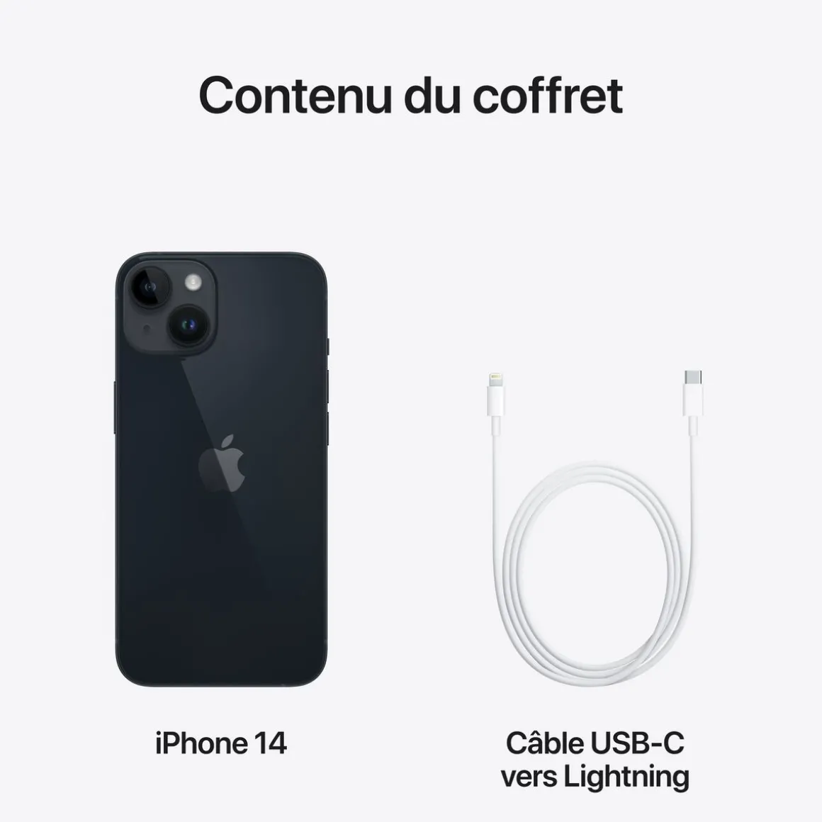(5) L’iPhone 14 est résistant aux éclaboussures, à l’eau et à la poussière. Il a été testé en laboratoire dans des conditions contrôlées et a obtenu l’indice de protection IP68 défini par la norme 60529 de la Commission électrotechnique internationale (CEI) (profondeur maximale de 6mètres pendant 30minutes maximum). La résistance aux éclaboussures, à l’eau et la poussière peut diminuer au fil du temps. Dans le cadre d’une usure normale, la résistance peut diminuer. N’essayez pas de recharger un iPhone humide. Reportez-vous au Guide d’utilisation pour connaître les consignes de nettoyage et de séchage. Les dégâts causés par des liquides ne sont pas couverts par la garantie.