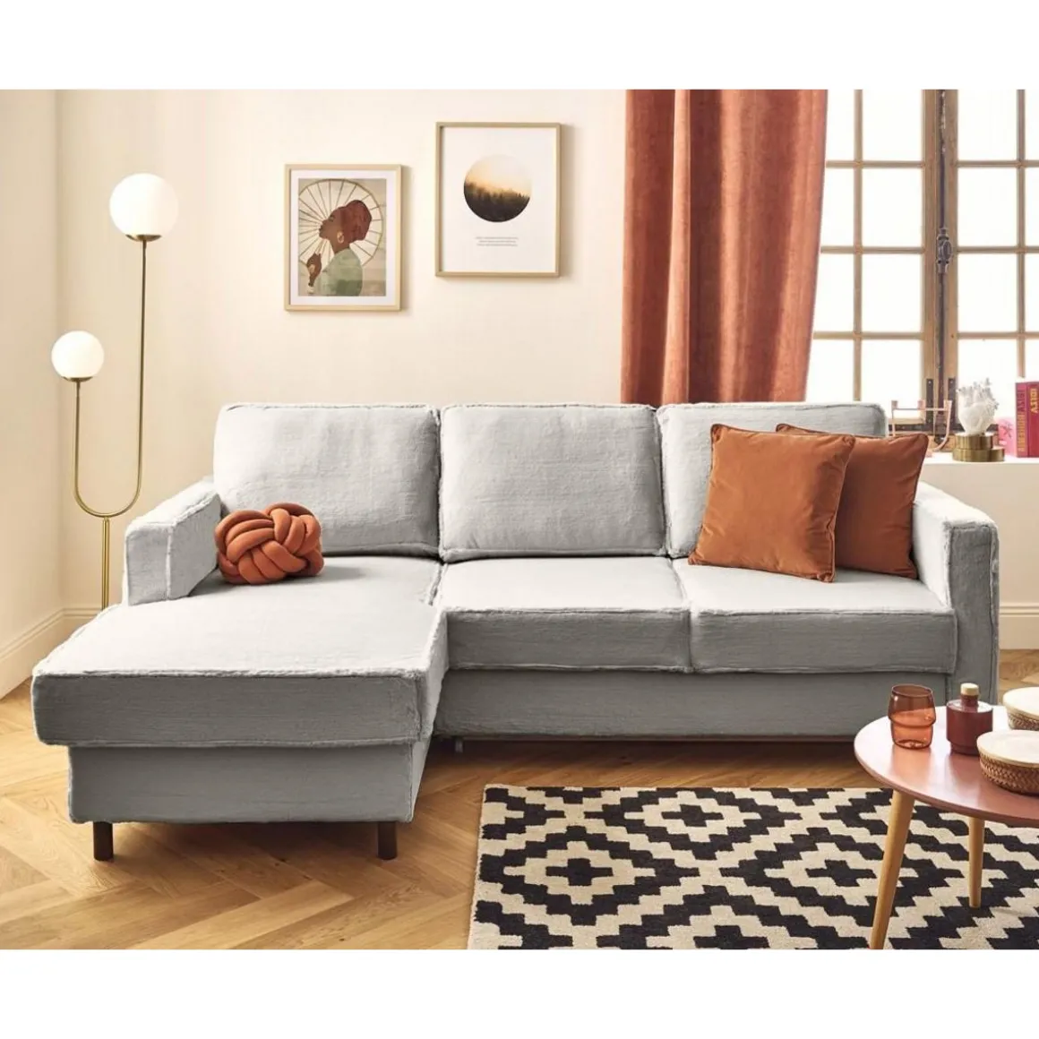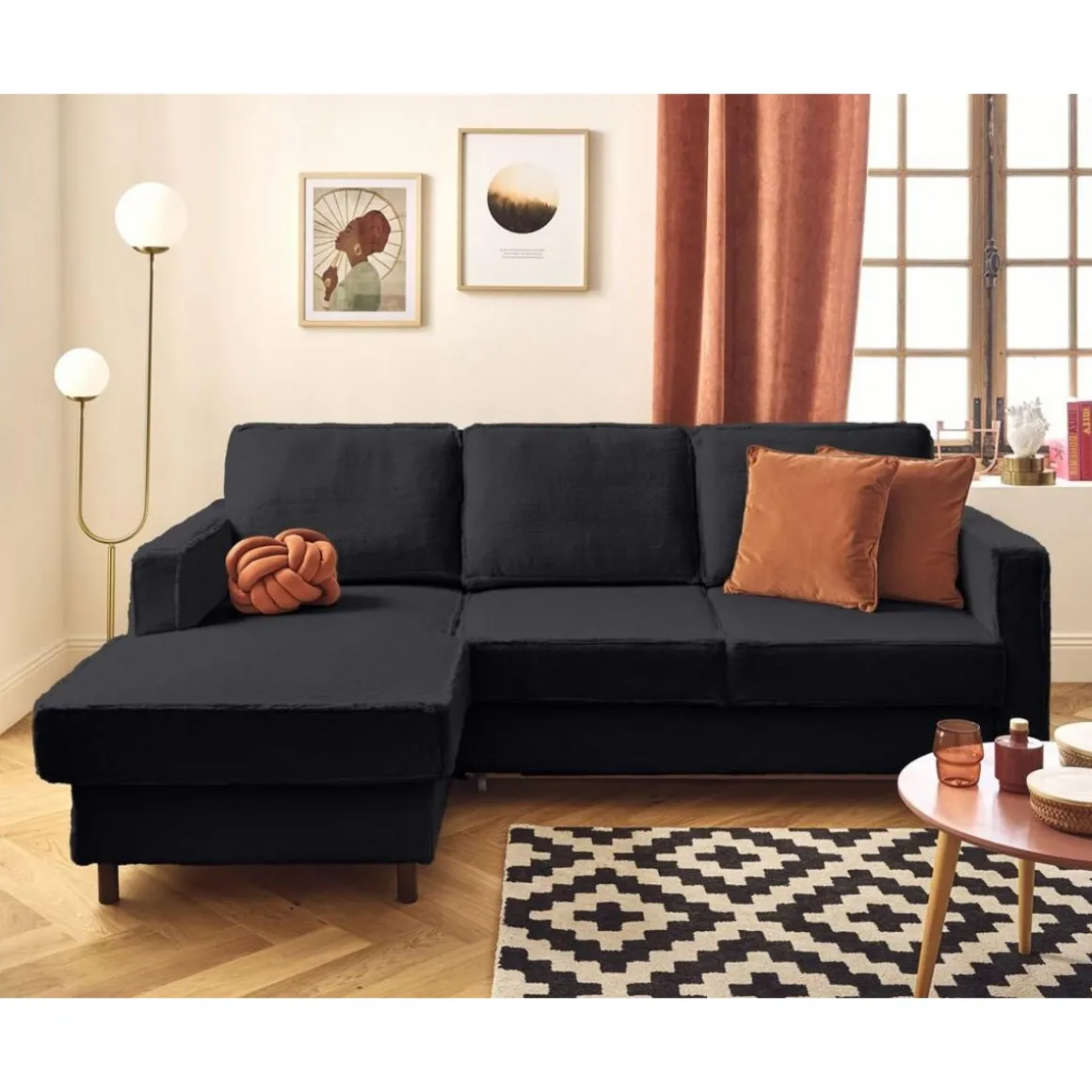Disponible en beige, bleu, gris clair, rouille et noir, le canapé JAKE se pare de magnifiques atouts pour sublimer votre intérieur. Choisissez la teinte de votre canapé selon vos goûts et le style déco désiré : beige pour une touche minimaliste tendance, bleu pour vous confectionner un véritable havre de paix, rouille pour apporter une touche moderne et colorée à votre espace. C’est selon vos goûts ! Ce magnifique canapé 4 places à angle gauche se pare d’un revêtement en fausse fourrure très doux, parfait pour ajouter une touche cocooning à votre intérieur. Ceci, tout en vous offrant un confort inégalable, grâce à des dimensions généreuses et des coussins de dossier très confortables. Vous apprécierez tout particulièrement les dimensions agréables de la méridienne, une véritable invitation à la détente et au bien-être. N’hésitez pas à déposer sur votre nouveau canapé JAKE un plaid en velours grosse côte, pour une touche de douceur supplémentaire et un magnifique contraste des textures.