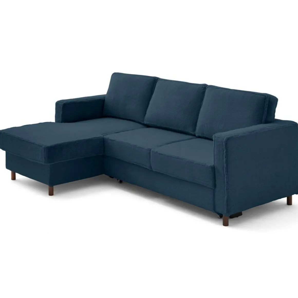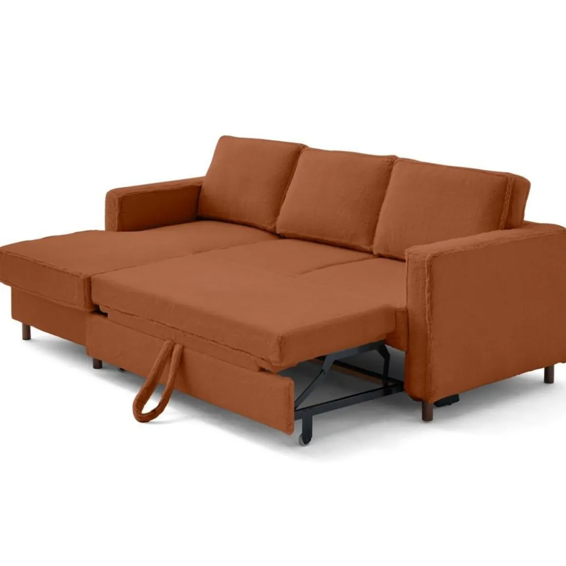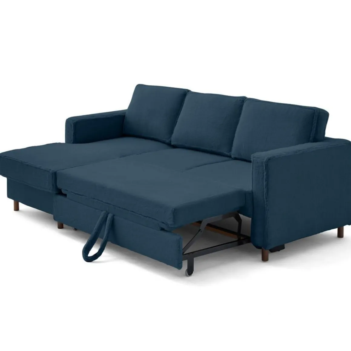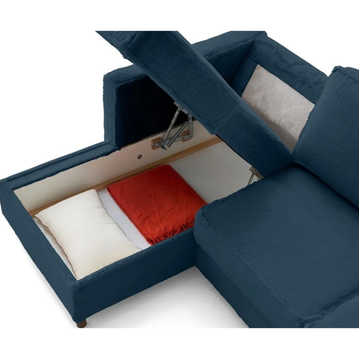 Le canapé JAKE n’est pas uniquement sublime et confortable : il est aussi très pratique au quotidien ! Outre ses 4 places agréables, ce joli canapé est doté d’une fonction convertible, dissimulée dans un tiroir situé sous son assise principale. Une option idéale pour accueillir vos convives d’une nuit comme il se doit, mais aussi parfaite pour vous permettre de vous détendre après une longue journée. Fabriqué en Europe, le canapé JAKE comprend également un coffre de rangement très pratique, situé sous sa méridienne.