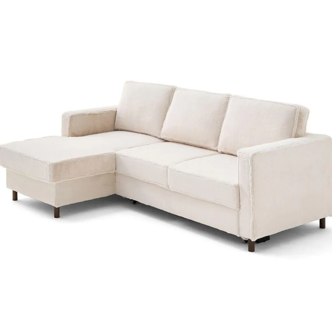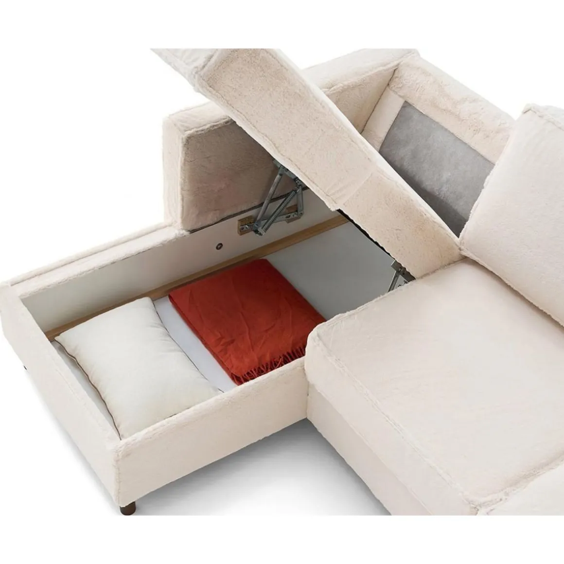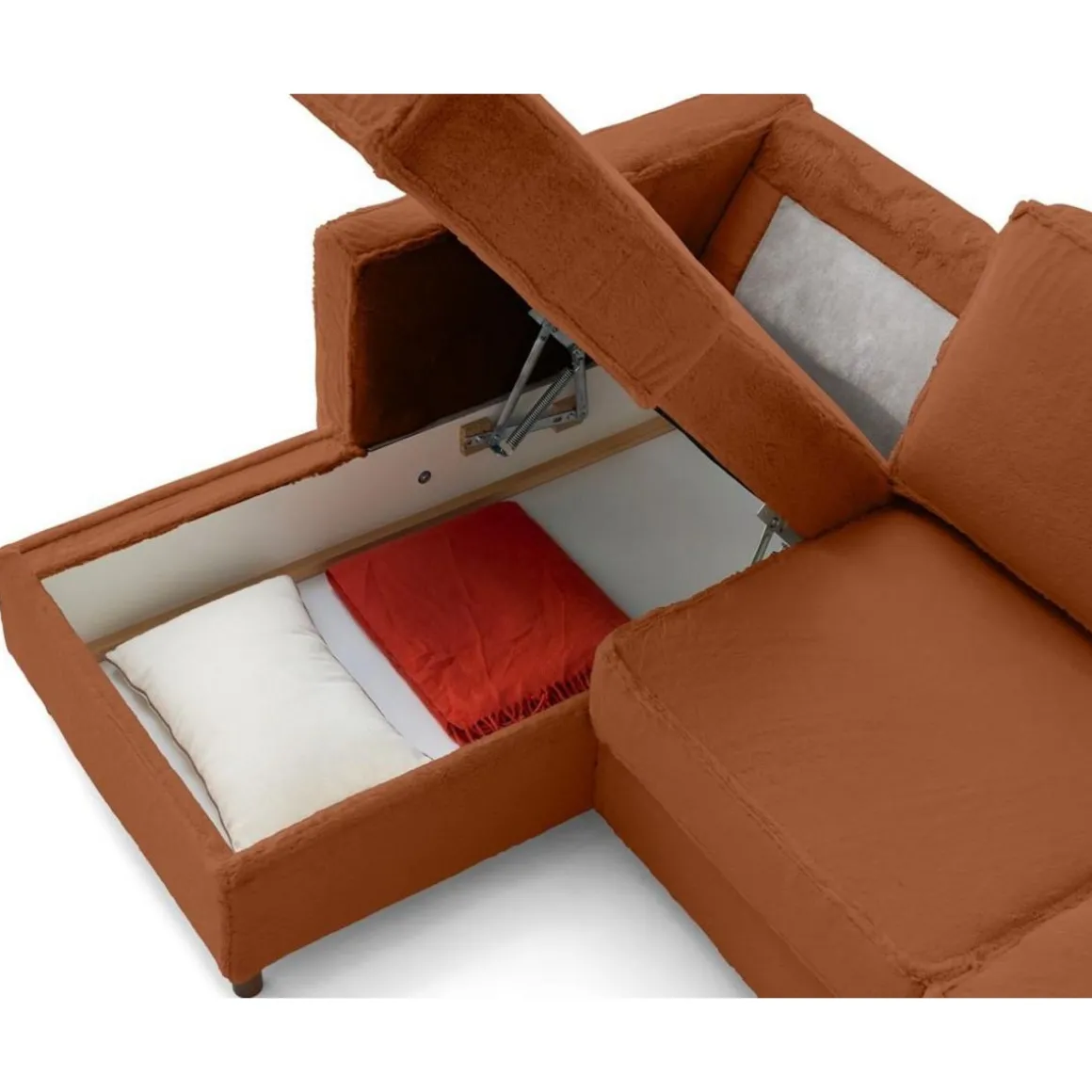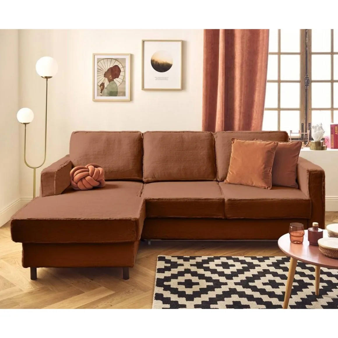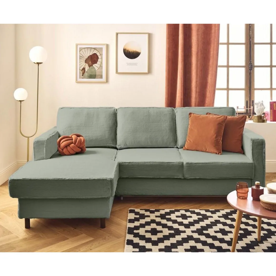 Le canapé JAKE n’est pas uniquement sublime et confortable : il est aussi très pratique au quotidien ! Outre ses 4 places agréables, ce joli canapé est doté d’une fonction convertible, dissimulée dans un tiroir situé sous son assise principale. Une option idéale pour accueillir vos convives d’une nuit comme il se doit, mais aussi parfaite pour vous permettre de vous détendre après une longue journée. Fabriqué en Europe, le canapé JAKE comprend également un coffre de rangement très pratique, situé sous sa méridienne.