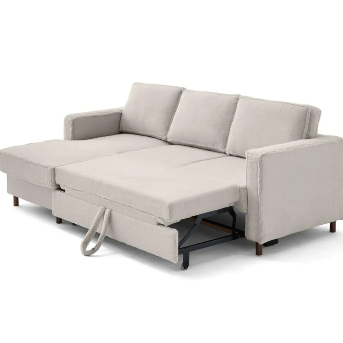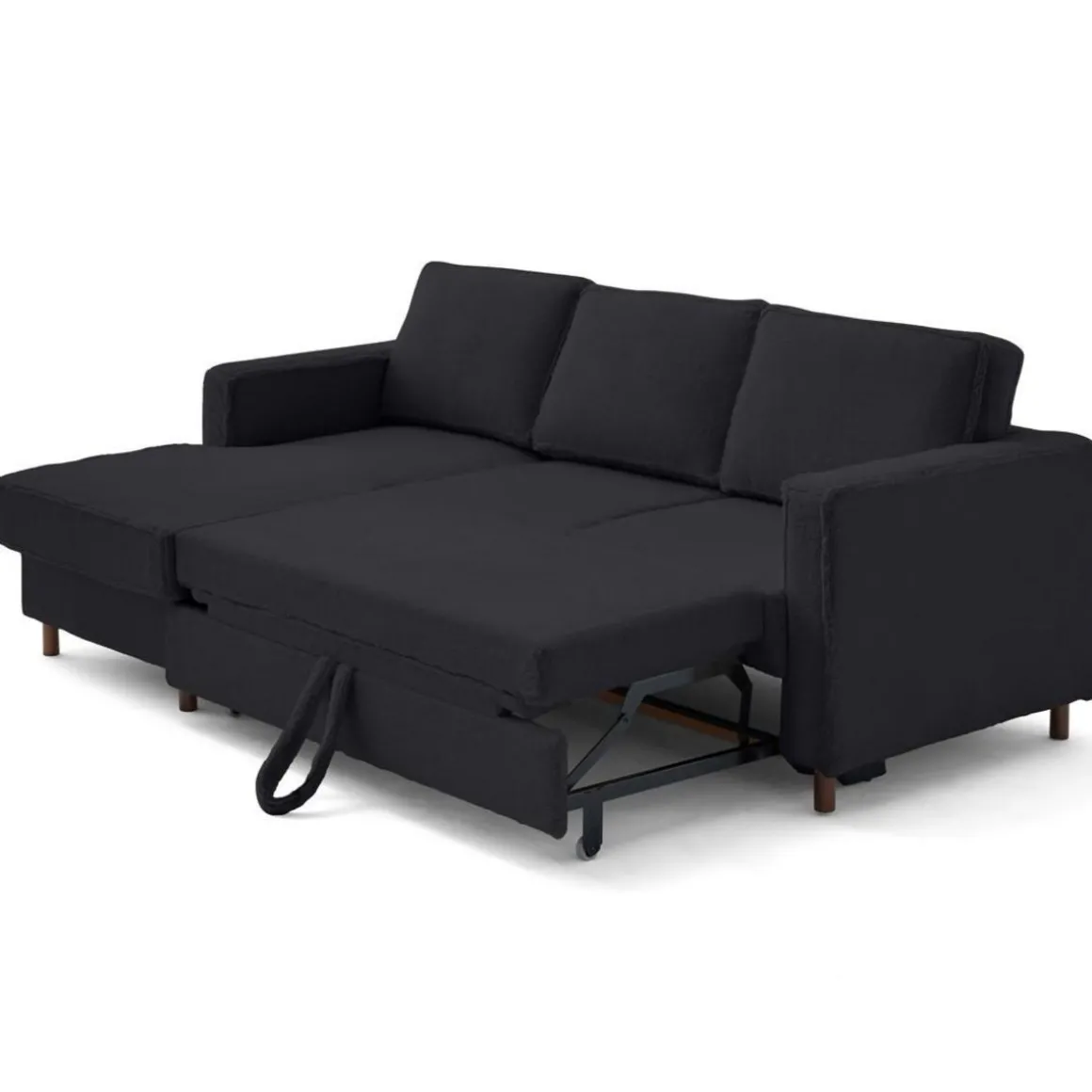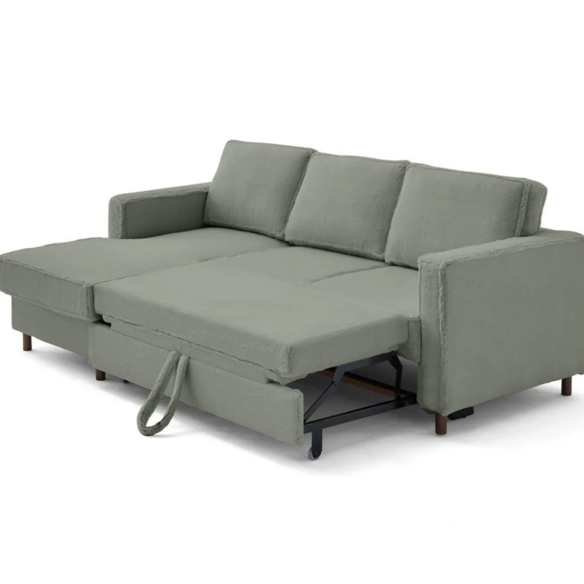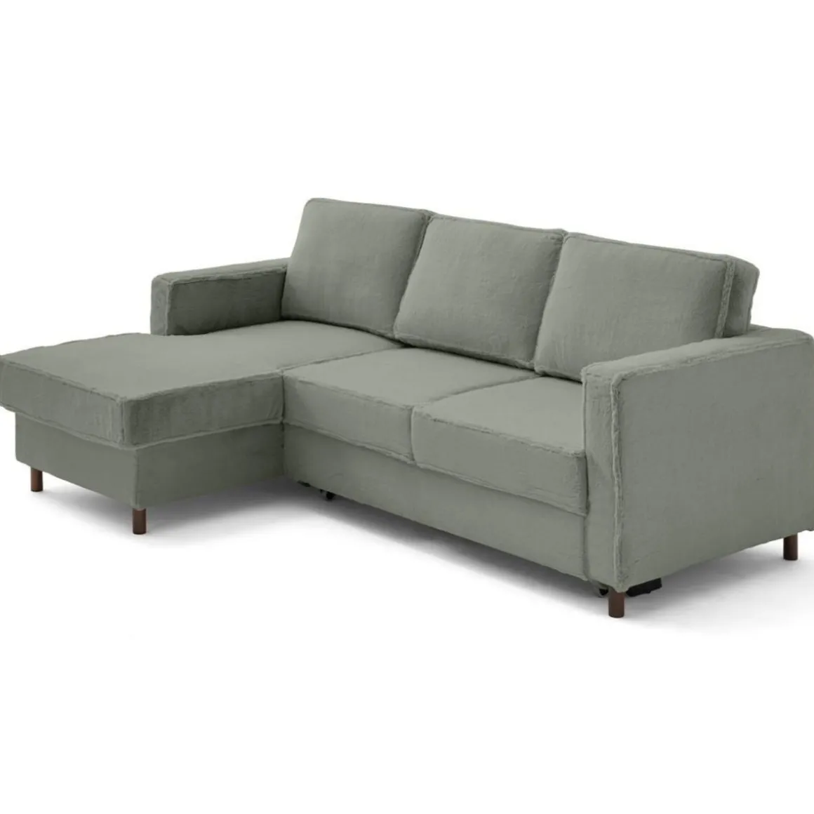 Le canapé JAKE n’est pas uniquement sublime et confortable : il est aussi très pratique au quotidien ! Outre ses 4 places agréables, ce joli canapé est doté d’une fonction convertible, dissimulée dans un tiroir situé sous son assise principale. Une option idéale pour accueillir vos convives d’une nuit comme il se doit, mais aussi parfaite pour vous permettre de vous détendre après une longue journée. Fabriqué en Europe, le canapé JAKE comprend également un coffre de rangement très pratique, situé sous sa méridienne.