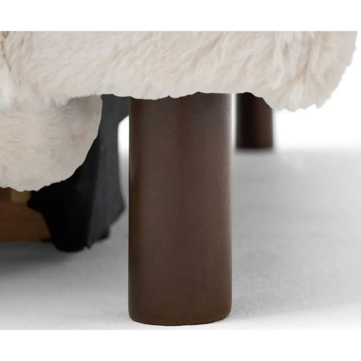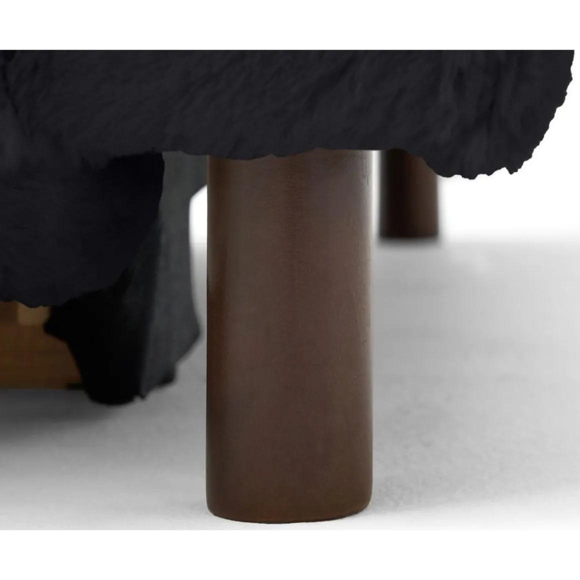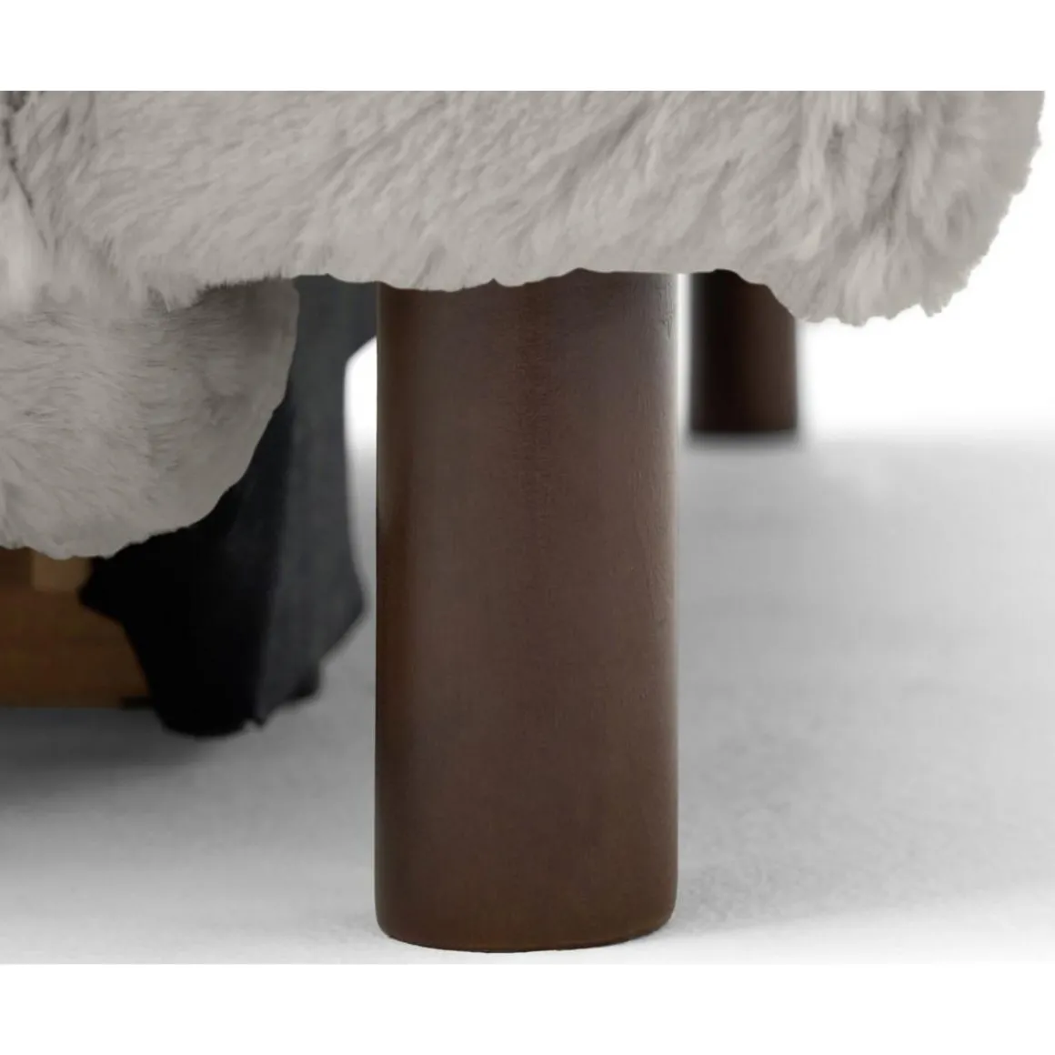 - Détail des matières : Assise : Mousse polyuréthane 30Kg/m3 – Dossier : Mousse polyuréthane 28Kg/m3 – Ressorts plats – Structure en bois et panneaux de particules – Revêtement en fausse fourrure – Pieds en bois wengé