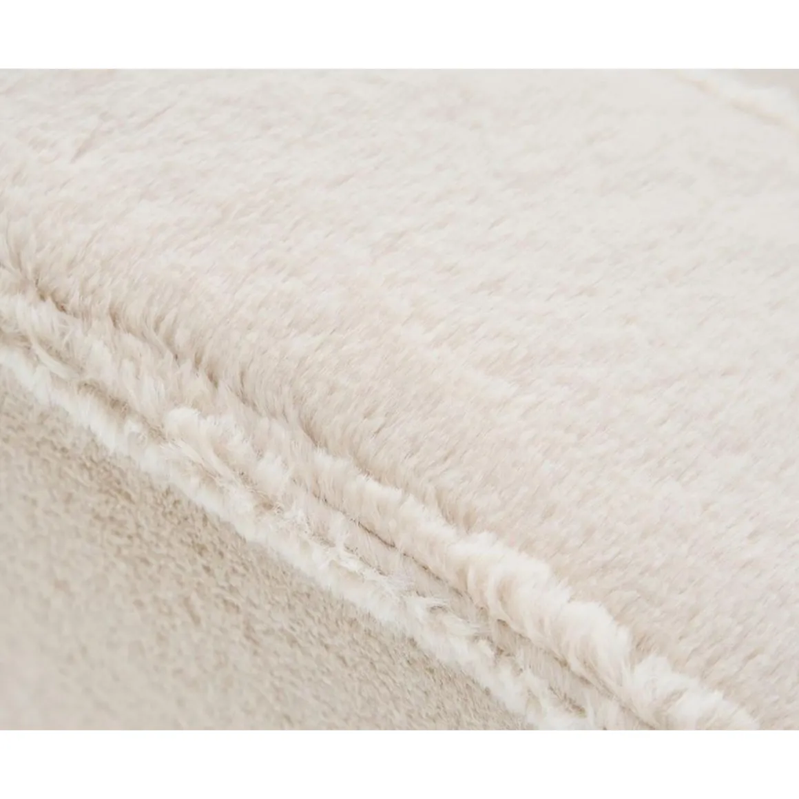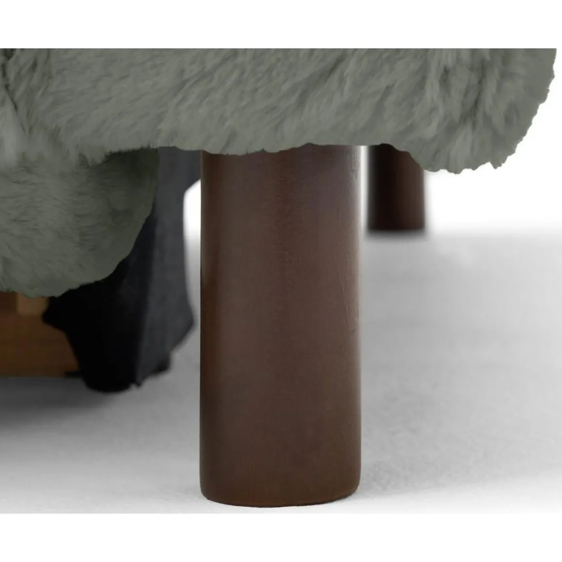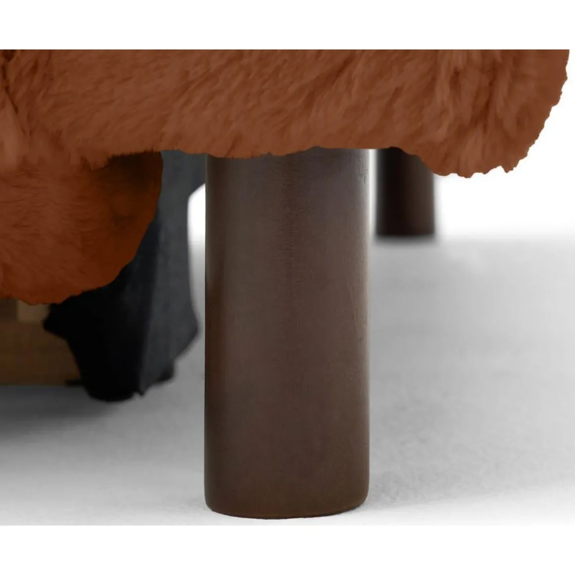 - Détail des matières : Assise : Mousse polyuréthane 30Kg/m3 – Dossier : Mousse polyuréthane 28Kg/m3 – Ressorts plats – Structure en bois et panneaux de particules – Revêtement en fausse fourrure – Pieds en bois wengé