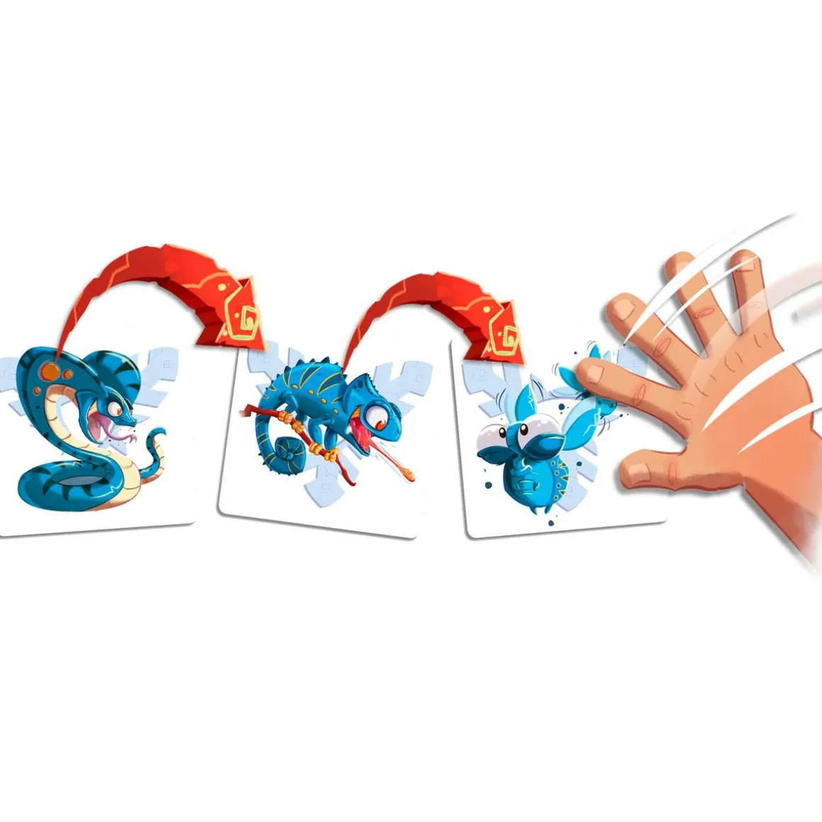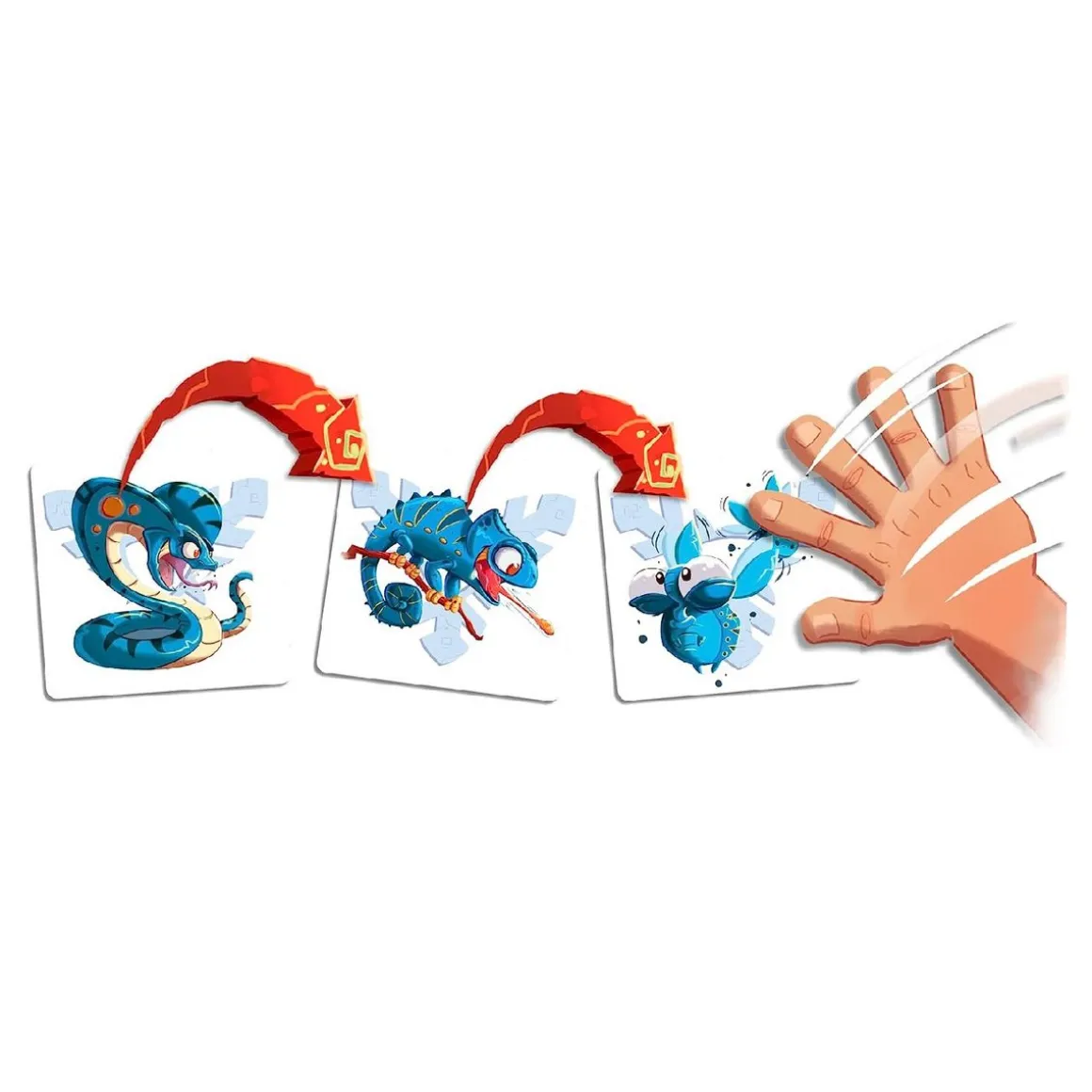 Dévoilant vos cartes à tour de rôle, vous devrez rester à l’affût et attaquer dès qu’une nouvelle proie sera révélée ; ou vous protéger si un prédateur débarque !