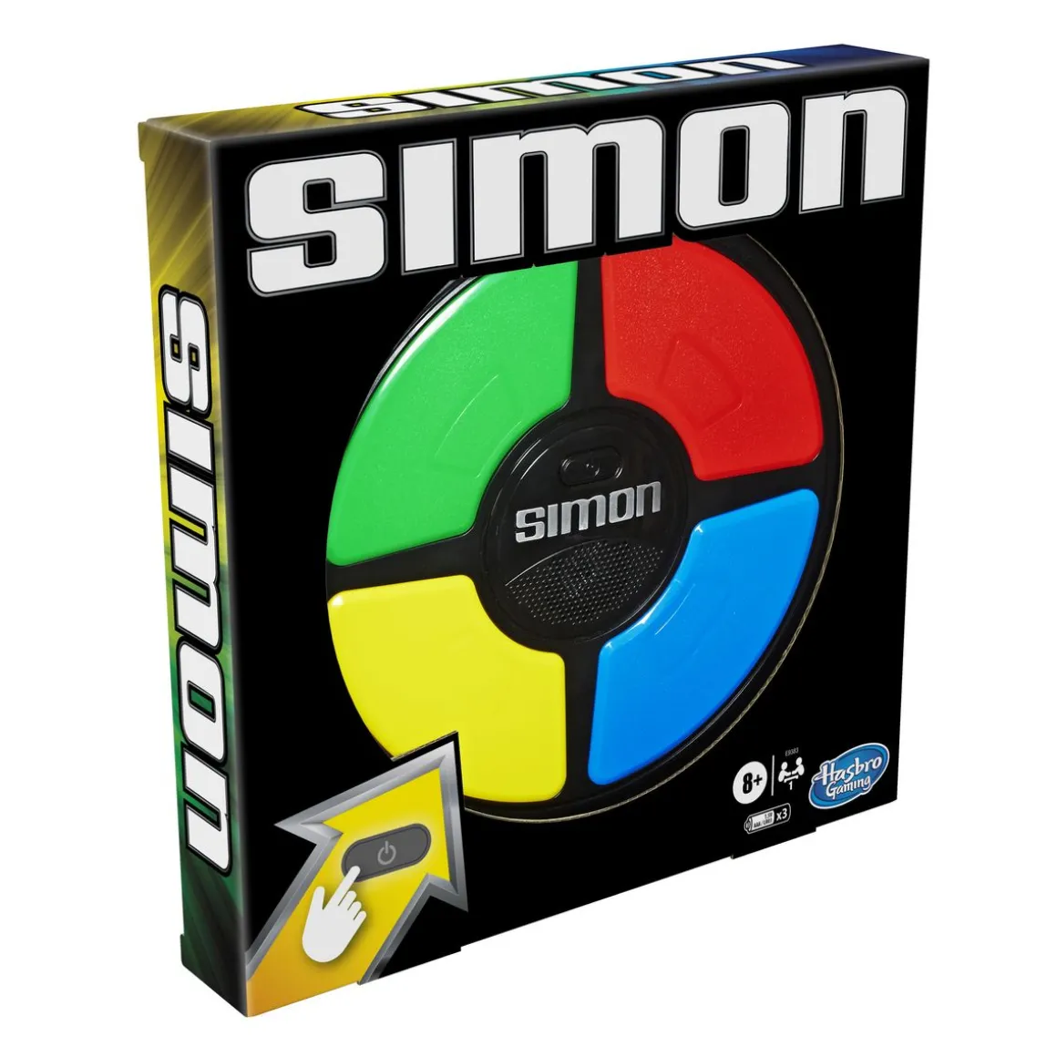 Ce jeu rapide de sons et de lumières met les joueurs au défi à chaque séquence. Pour vaincre Simon, les joueurs doivent mémoriser des séquences de lumières et les reproduire en appuyant sur les couleurs du module dans le bon ordre. Plutôt faciles au début, les séquences se compliquent en cours de jeu, ce qui fait monter le suspense à chaque tour. On compte 1 point chaque fois que la lumière verte clignote et 10 points quand toutes les lumières clignotent en même temps. Le module Simon mémorise le meilleur score pendant les parties entre amis ou lorsqu’un joueur tente de battre son propre meilleur score dans une partie solo. De plus, le module de jeu tout-en-un permet aussi d’emporter facilement ce jeu amusant pour enfants (à partir de 8 ans) en voyage. Les jeux qui tiennent dans une main sont de super cadeaux pour les filles et les garçons, et les jeux de mémoire électronique comme le jeu Simon sont de super jeux d’intérieur pour les enfants. Simon, Hasbro Gaming et toutes les marques associées sont des marques de commerce de Hasbro.