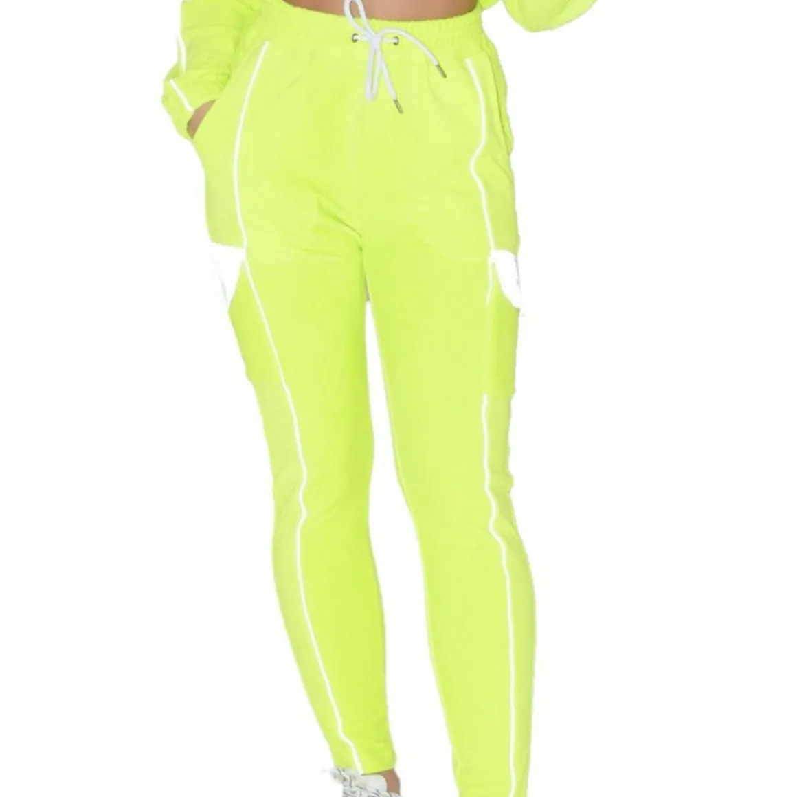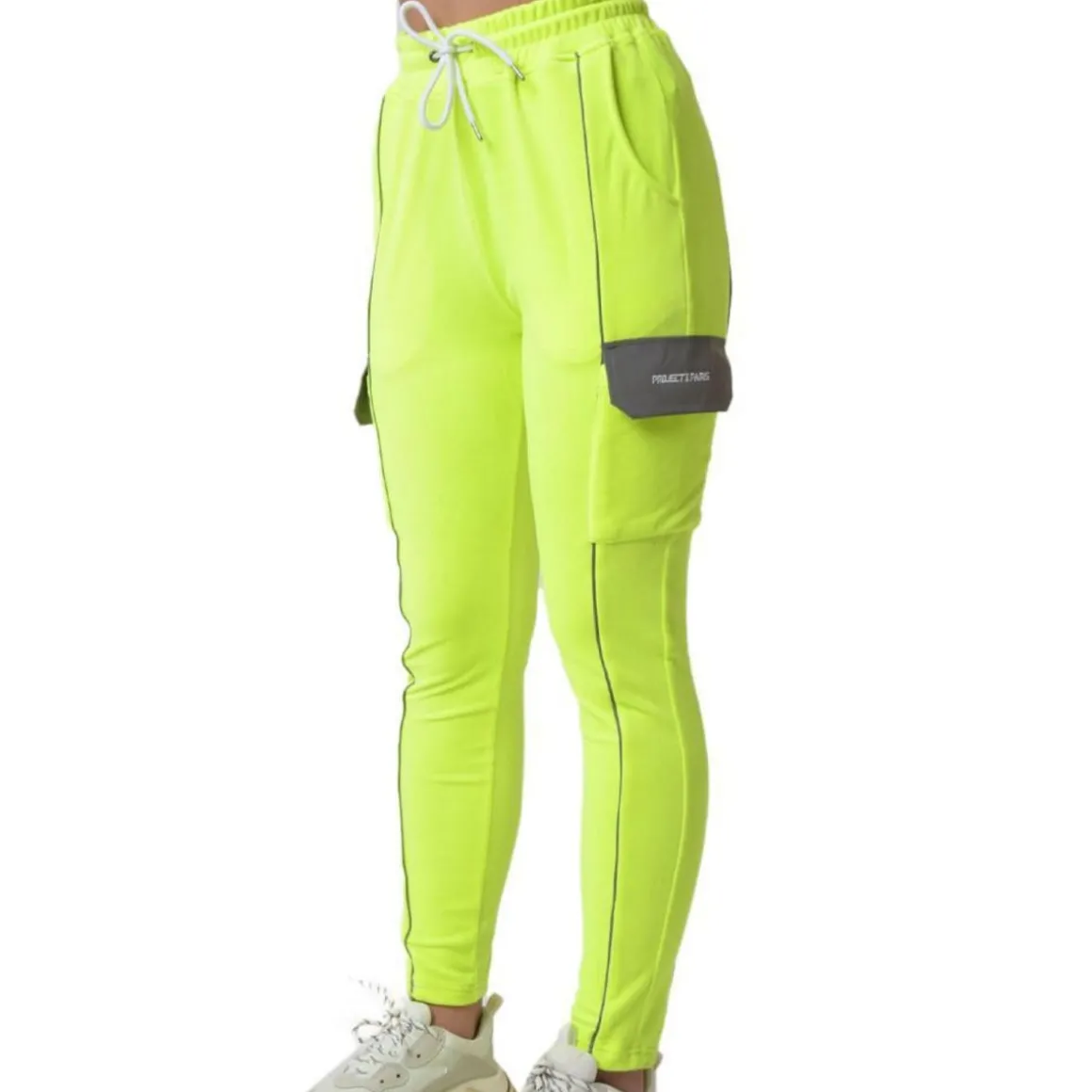 Découvrez ce jogging femme signé Project X Paris ! Couleur : Jaune fluo Coupe slim , Taille haute Style cargo avec poches sur les cuisses Ceinture élastique avec cordons de serrage Détails réfléchissants Matière : Peau de pêche Composition : 100% polyester