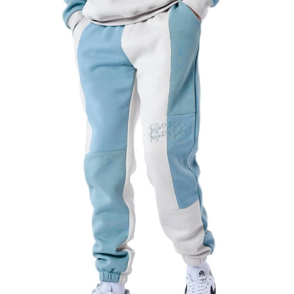 Optez pour le jogging de la marque PROJECT X PARIS à prix bas !Coloris : Beige/Bleu Ceinture élastique avec cordon de serrage à la taillePoches normales de chaque côté du pantalonLogo brodé sur le côté gauche au devant du pantalonFinition élastique en bas du pantalonComposition : 55%Coton,45%Polyester