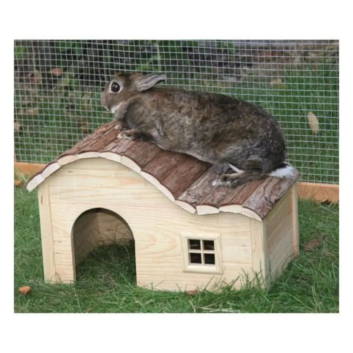 Maison Nature rectangulaire – En bois massif – Livraison démontée en carton – Dimensions : 30x20x19cm – Pour rongeur.