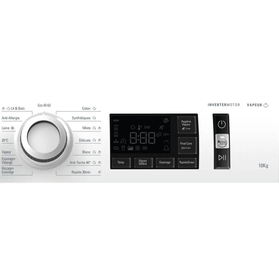 Lavage coton, Lavage linge délicat/soie, Lavage synthétique, Lavage rapide, Lavage laine, Lavage économique, Lavage mixte, Lavage blanc, Lavage draps