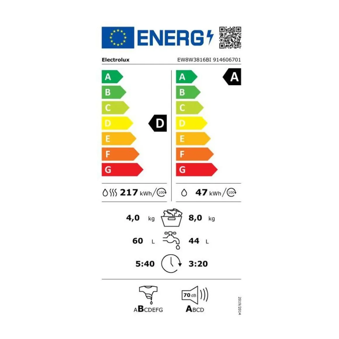 | Label énergie lavage et sechage | D | |