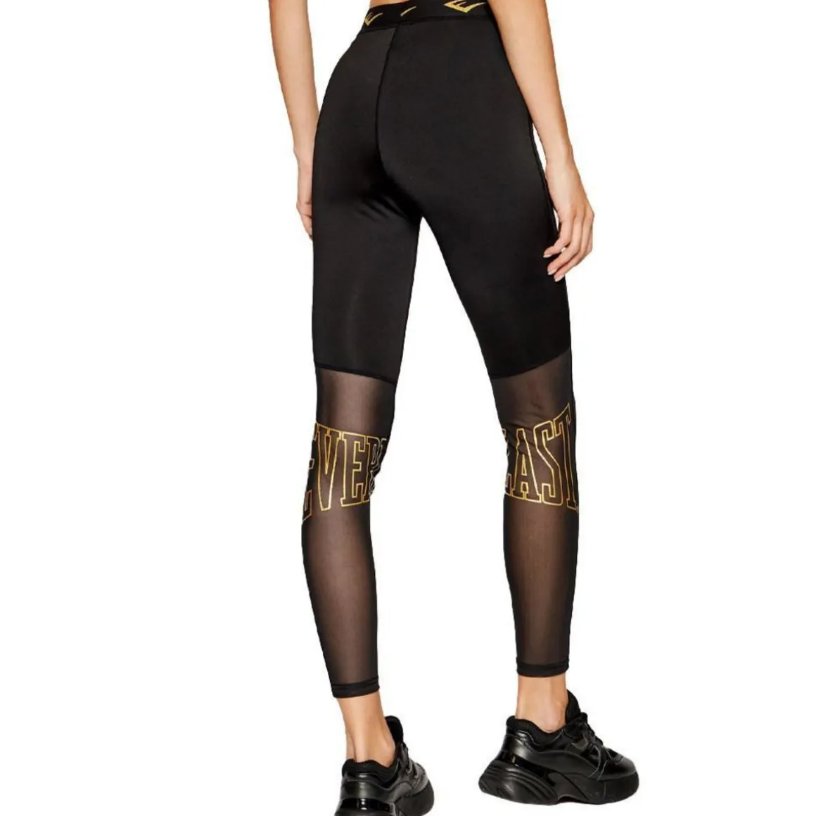 Legging pour femme de la marque Everlast ! Couleur : Noir, Doré Coupe ajustée Tille haute Ceinture élastique Bas arrière du legging transparent Imprimé Everlast Composition : 90% polyester, 10% élasthanne