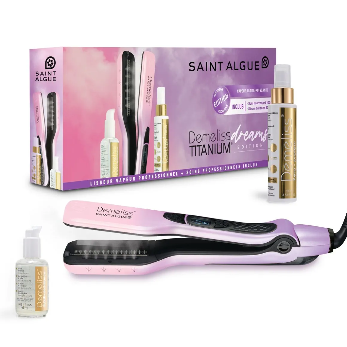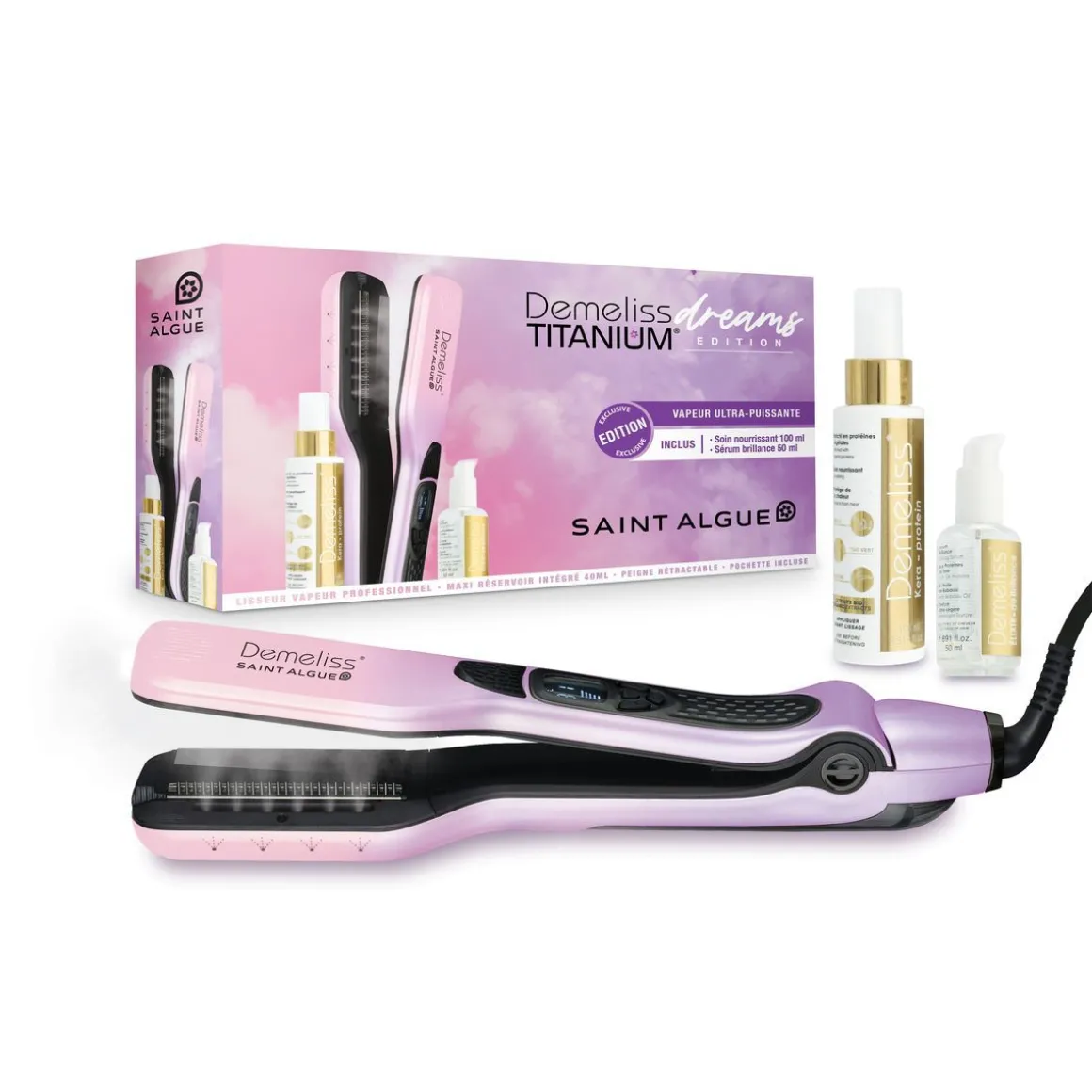 Un lissage parfait tout en préservant vos cheveux est possible grâce au lisseur vapeur Demeliss Titanium Dreams Edition !