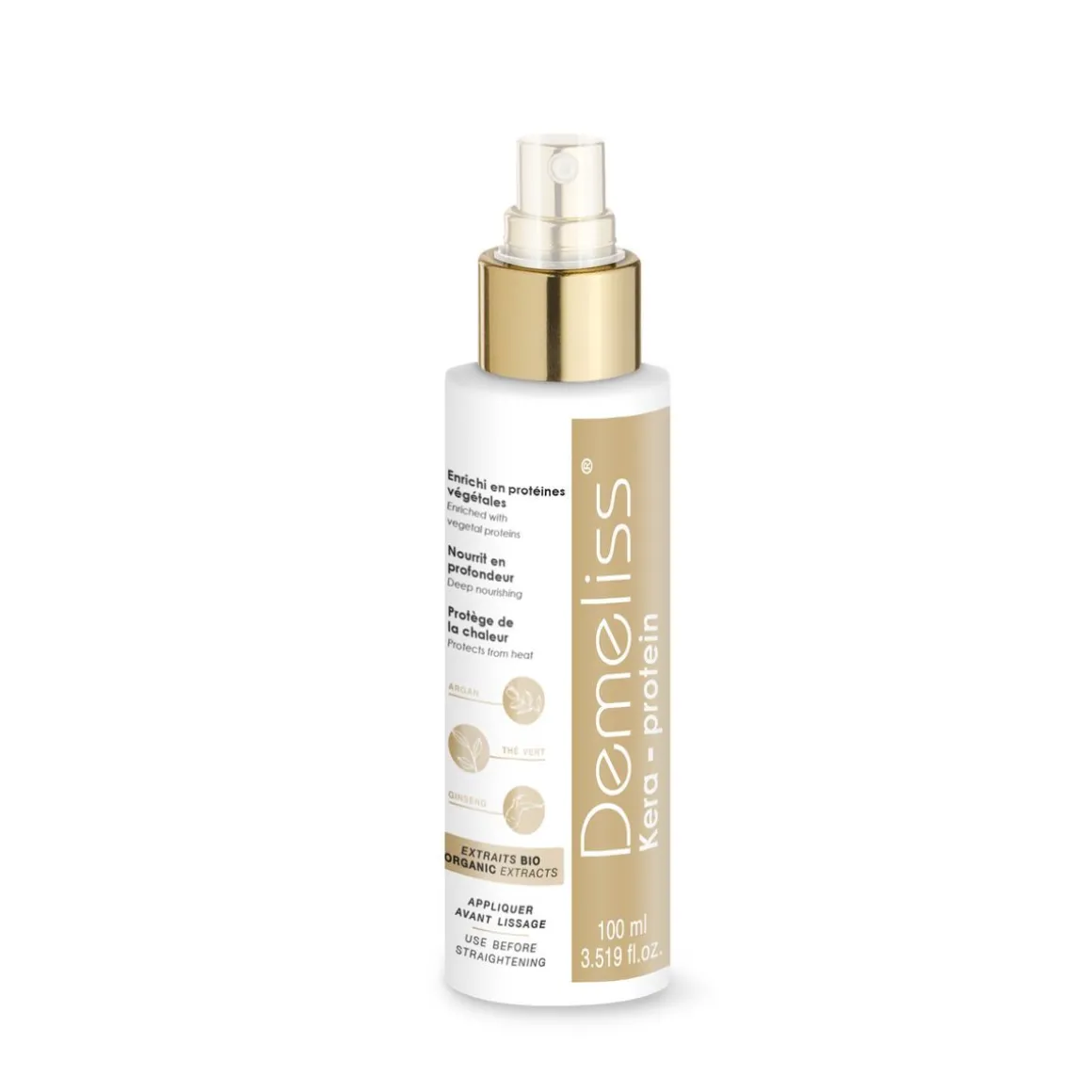 2 soins inclus, 1 avant pour protéger, 1 après pour nourrir et sublimer vos cheveux : appliquez le soin Kera-Protein, nourrissant et protecteur, avant le passage des plaques. Après le lissage, appliquez quelques noisettes de sérum Elixir de Brillance