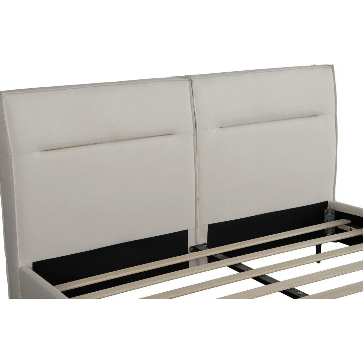 Sa tête de lit imposante de 147 x 13 x 88 cm crée un point focal saisissant dans votre chambre. Les dimensions bien pensées du repose-pieds, du panneau latéral et de la latte de lit assurent un soutien optimal et une construction solide. Malgré sa robustesse, ce lit ne pèse que 35,8 kg, ce qui en fait un choix pratique et facile à déplacer selon vos besoins. Optez pour ce lit en acier pour allier style et durabilité dans votre espace de repos. Matière : Tissu.