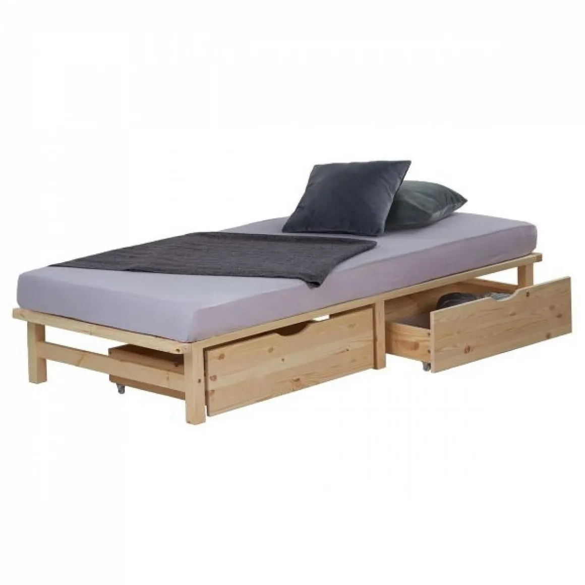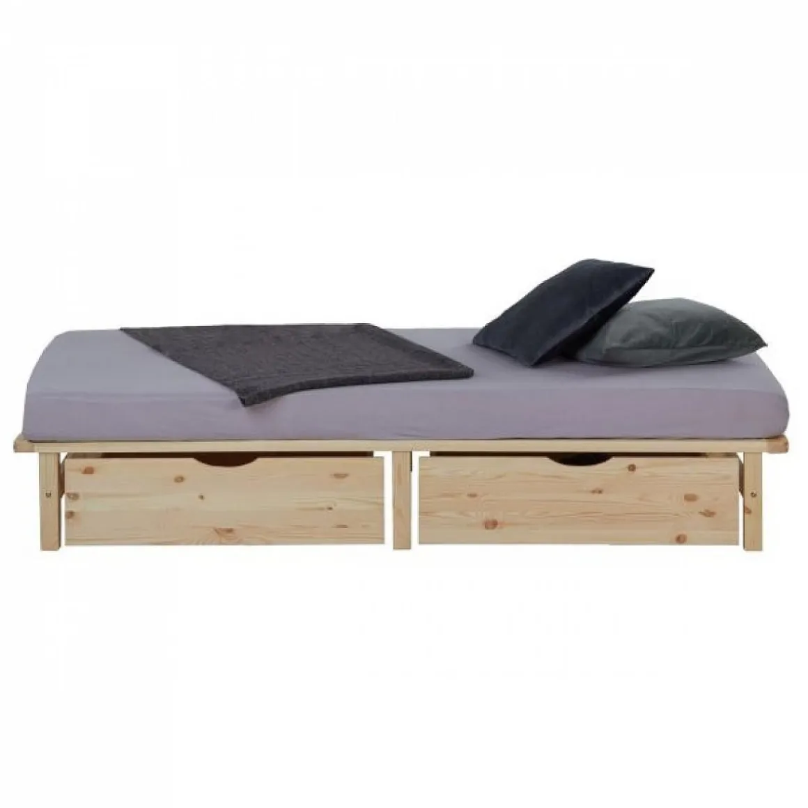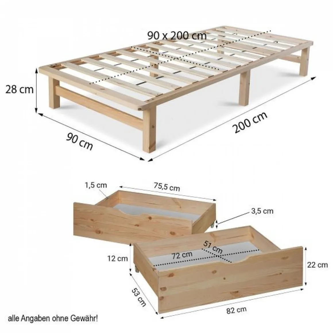 Lit en palette moderne 90×200 cm avec 2 tiroirs et sommier à lattes