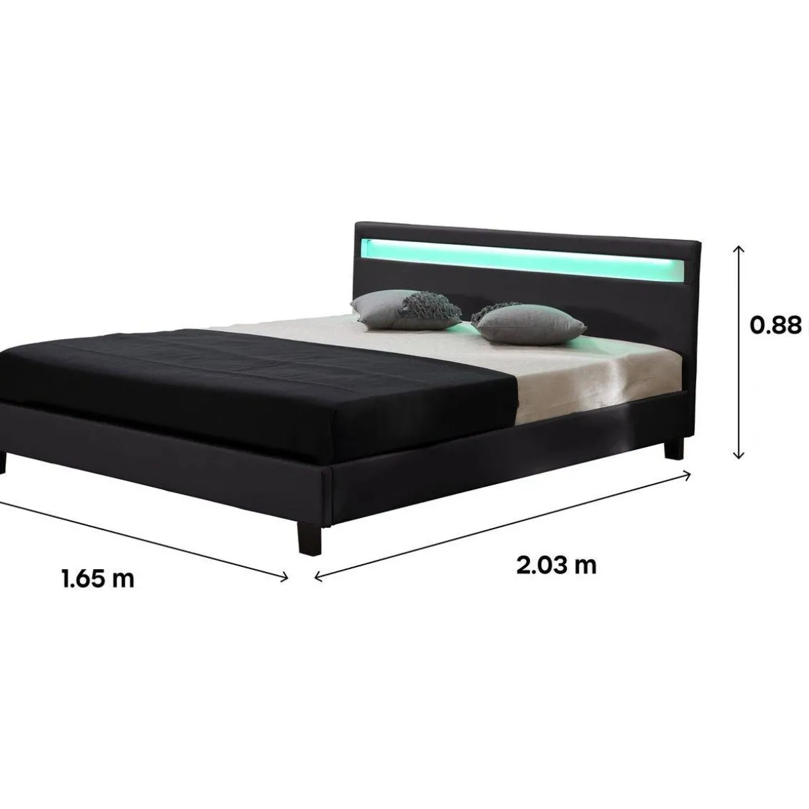 Un lit design, élégant et de haute qualité ! Le lit Maria est équipé de LED offrant 3 possibilités: rouge, vert et bleu qui peuvent être changés à l’aide de la télécommande qui vous est fournie.