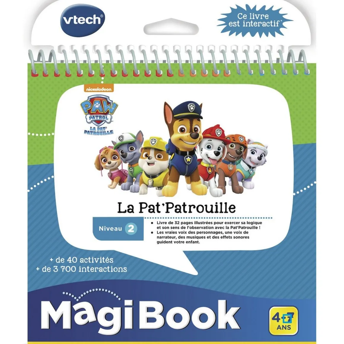 Magibook de VTCEH est un livre interactif de 32 pages illustrées qui plonge votre enfant dans l’univers de la Pat’Patrouille. Bébé fait des découvertes en chanson. Des musiques et des voix amusantes sont à télécharger sur la plateforme MagiBook à l’Explor@Park. Super, l’enfant peut suivre sa propre progression à l’aide du système de récompenses inclus (autocollants) !