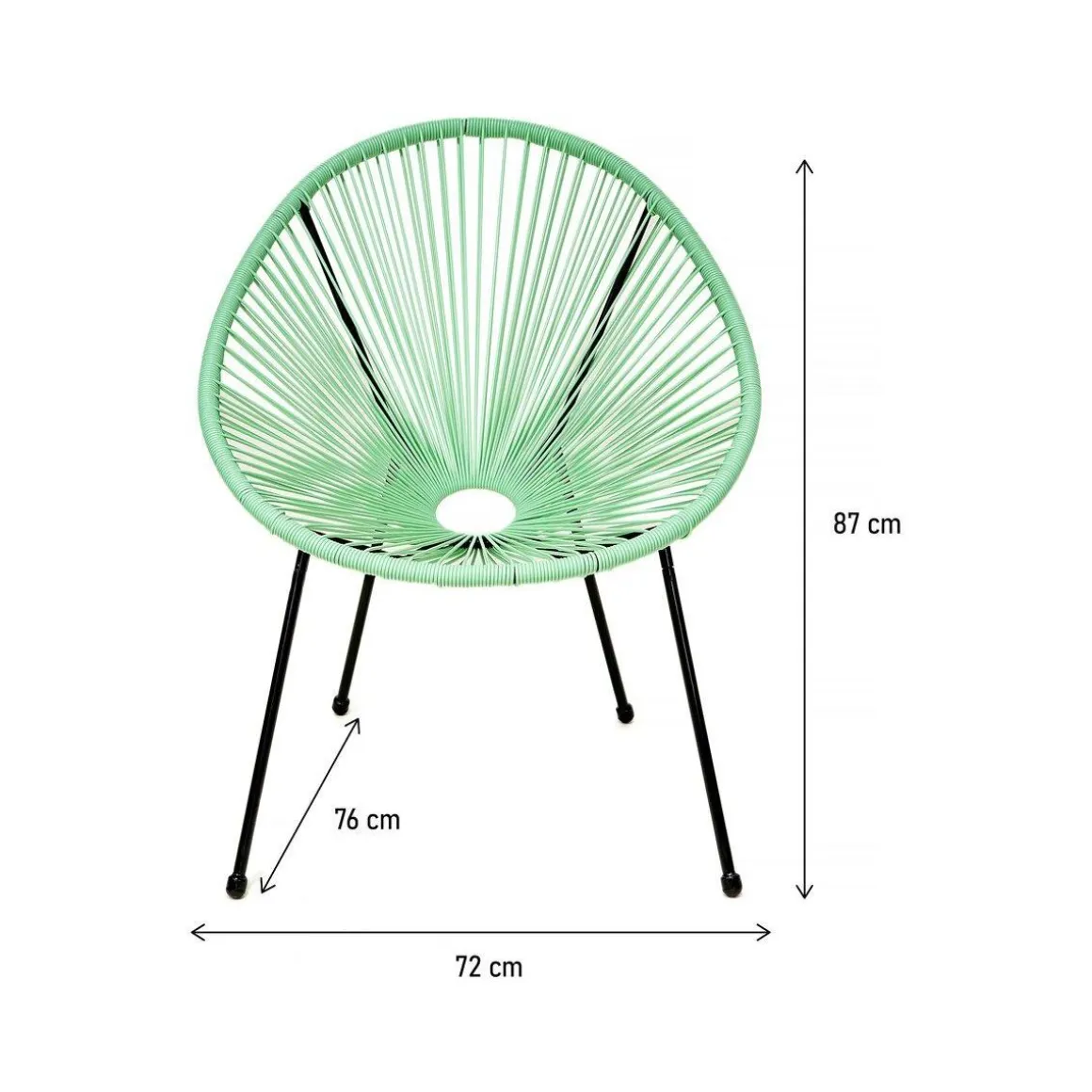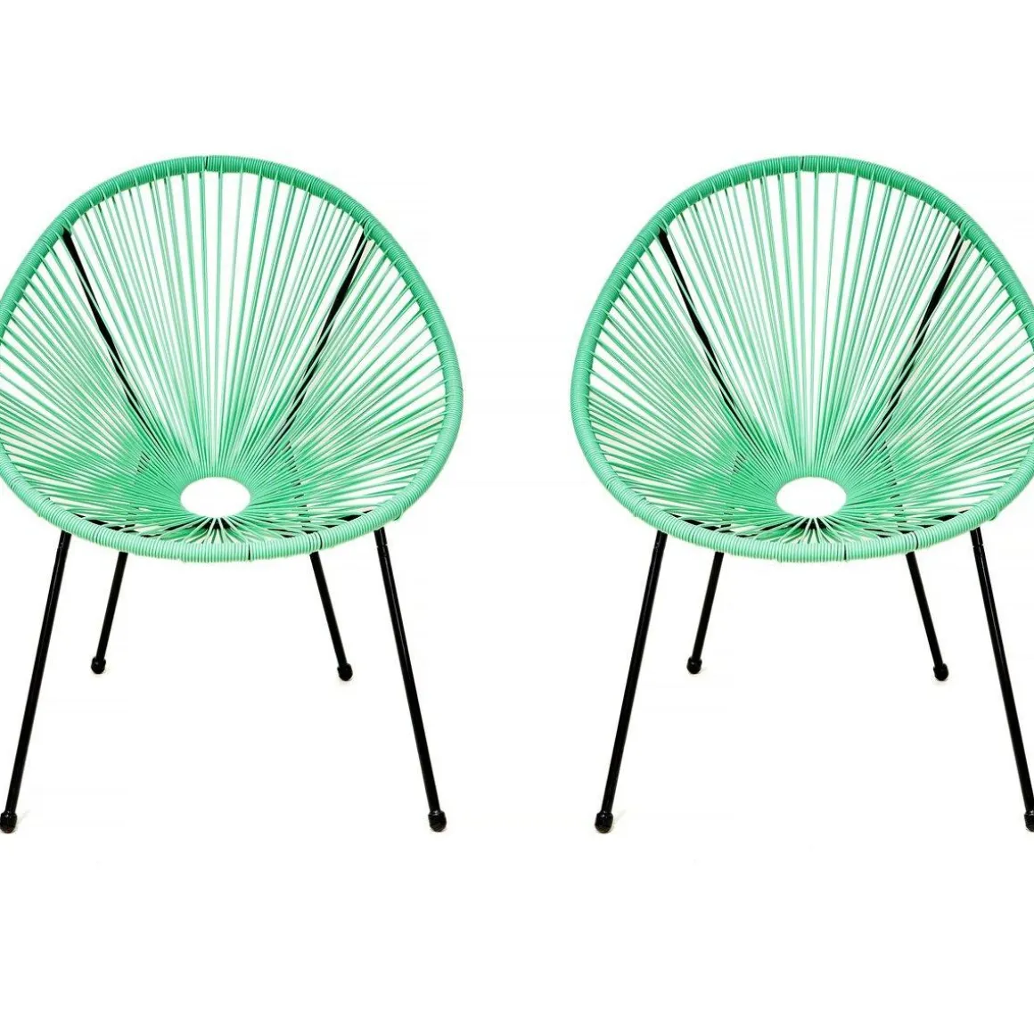 Lot de 2 fauteuils de jardin Ania – Vert La chaise Acapulco vert offre un design iconique et élégant avec un fil résistant aux intempéries pour une durabilité maximale. Son style rétro et sa couleur vibrante apportent une touche de fraîcheur à tout espace intérieur ou extérieur. Confortable, polyvalente et tendance, cette chaise est un incontournable pour se détendre avec style.Couleur : Vert.