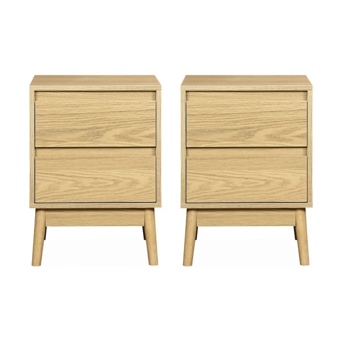 Invitez le charme scandinave à votre chevet avec ces délicates tables de nuit. Leur structure en décor bois leur offre un aspect authentique qui sera du plus bel effet dans votre chambre. Leur piètement compas quant à lui, ajoute un charme scandinave les rendant uniques. Dans leurs deux tiroirs, vous pouvez facilement ranger vos livres, lunettes et autres accessoires. On vous conseille d’ajouter sur leur plateau une jolie lampe, pour un rendu super tendance !