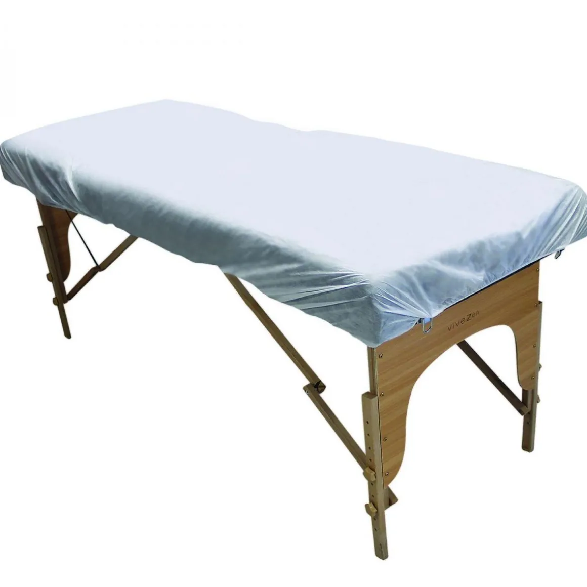 La housse pour table de massage Vivezen est réalisée en spunbond élastique, qui est une matière très agréable au toucher. Elle peut être lavée à froid jusqu’à cinq fois, pouvant ainsi être réutilisée avant d’être jetée. De dimensions 90 x 220 cm, elle est proposée en lot de 20 pièces. Ces housses sont prévues pour des tables de dimensions : (L) de 175 à 220 cm x (l) de 65 à 90 cm. Les bords de la housse sont en élastique. Les consignes d’entretien sont : lavage à froid, et sèche-linge interdit. Elle est réutilisable jusqu’à 5 lavages. Son coloris est blanc. Nous proposons également des lots de 5, 10 ou 50 draps housses.