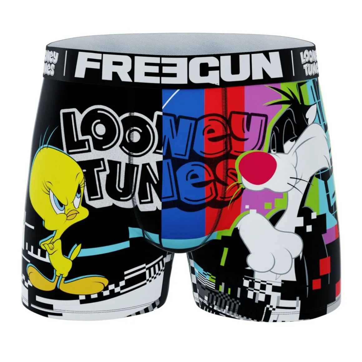 Nos caleçons Freegun Homme Imprimé Looney Tunes sont réalisés à base de 92% Polyester 8% Elasthanne / Doublure 100% Coton pour un maintien optimal, une liberté de mouvement incomparable dû à l’elasticité que contient le tissu du sous-vêtement et bien sur un confort à toute épreuve grâce à la douceur du textile microfibre et à la doublure en coton présente à l’interieur du slip Freegun. Les sous-vêtements Freegun Looney Tunes sont Confort, Respirant, Stretch, la ceinture élastique Large Noir permet une tenue accrue sans gêne. Dans ce pack de boxers nous vous proposons différents coloris : Multicolore. Si vous êtes un passionné de Looney Tunes, n’hésitez pas à adopter un style décalé et fun ! Ce lot de boxers Freegun est lavable en machine à 30°C et resistera à la décoloration. Les imprimés Freegun sont dessinés en France, nos équipes de graphistes recherchent sans cesse de nouveaux design inédits à arborer sur nos calecons. Ces sous-vêtements Freegun sont disponibles en taille S, M, L, XL, XXL, conformément aux standards des tailles européennes. Ne pas sécher au sèche linge, ne pas repasser.