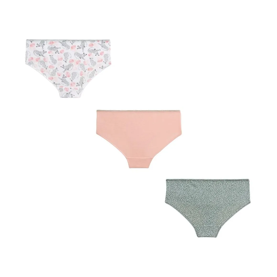 Votre fille va se sentir libre toute la journée avec ce lot de culottes agréables. On adore ses motifs trop jolis et ce mélange de couleur écrue, pêche et kaki. Confort assuré grâce au 100% coton, issu de l’agriculture biologique !