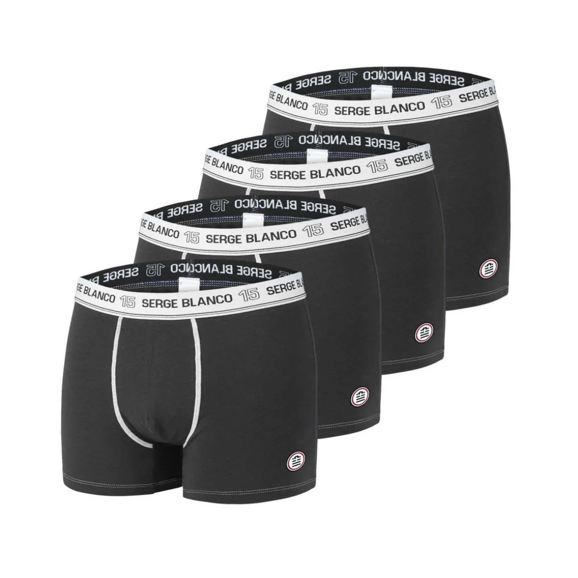 Serge Blanco vous propose un superbe lot de 4 boxers en coton pour homme Uni ! Les caleçons Serge Blanco seront vos allié pour avoir des sous-vêtements confortables avec un bon maintien. Les coloris sobres et la ceinture des boxers vous donneront un style moderne !