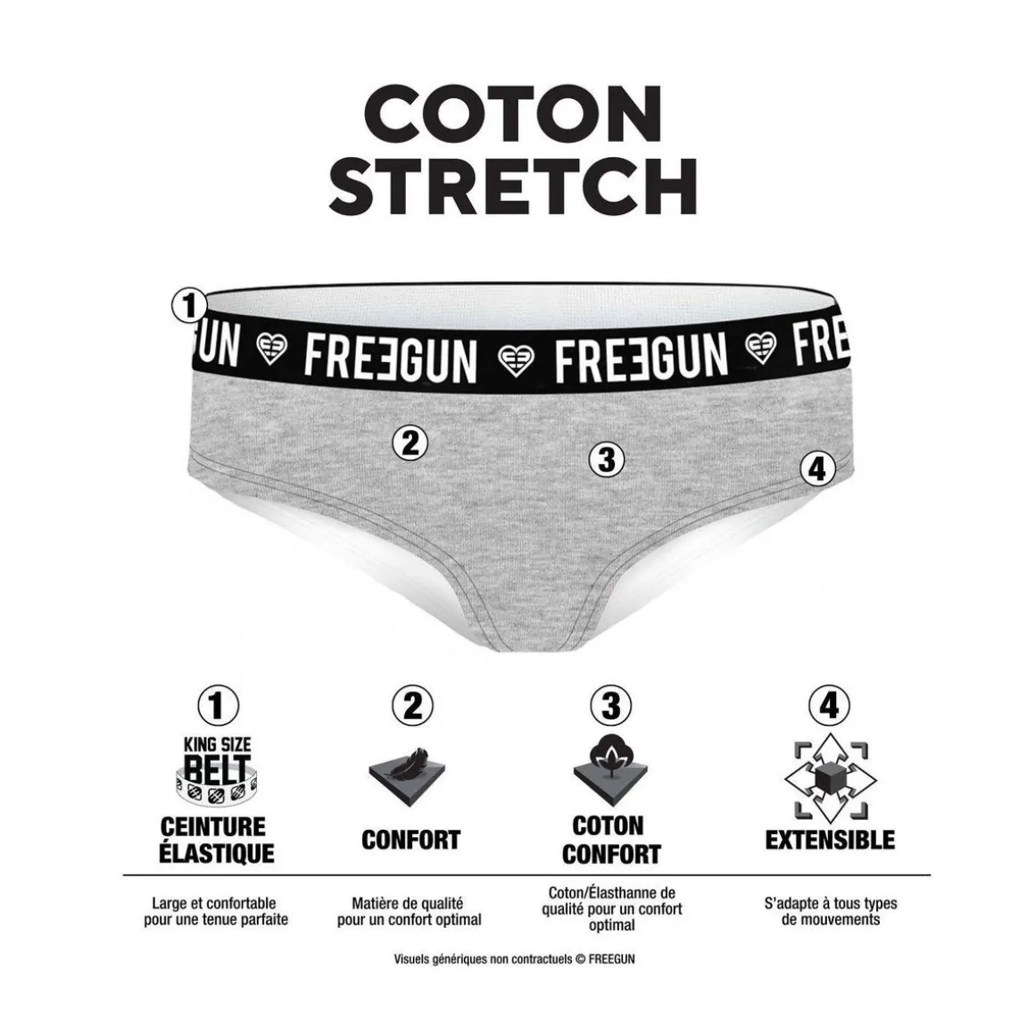 Nos sous-vêtements Freegun Fille Ethnik sont fabriqués à base de 95% Coton 5% Elasthanne pour un maintien optimal, une liberté de mouvement inégalable grâce à l’elasticité présente dans les fibres du boxer, et un confort en toute circonstance grâce à la douceur du coton stretch. Son design sobre et la douceur du tissu permet de porter ses culottes pour tout type d’activité au quotidien. Ce lot de caleçons Freegun est lavable en machine à 30°C et résistera à la décoloration. Ces slips sont disponibles en taille 6-8 ans, jusqu’à 14-16 ans, conformément aux standards de tailles européennes. Ce Lot de 5 culottes Freegun a une coupe Classique et une ceinture élastique Large à motifs ethniques pour un look fun et décalé !