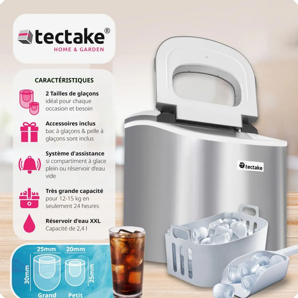 - Panier à glace et pelle à glaçons incl.