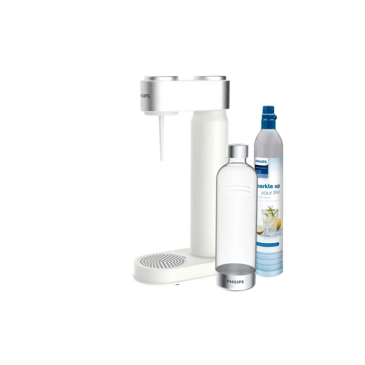 La machine à soda Philips ADD4902WH de couleur blanche permet de préparer jusqu’à 60 litres de soda. Elle dispose de 3 gestes simples pour la préparation et le niveau de gazéification est réglable. Cette machine fonctionne sans électricité. Disponible en plusieurs coloris.