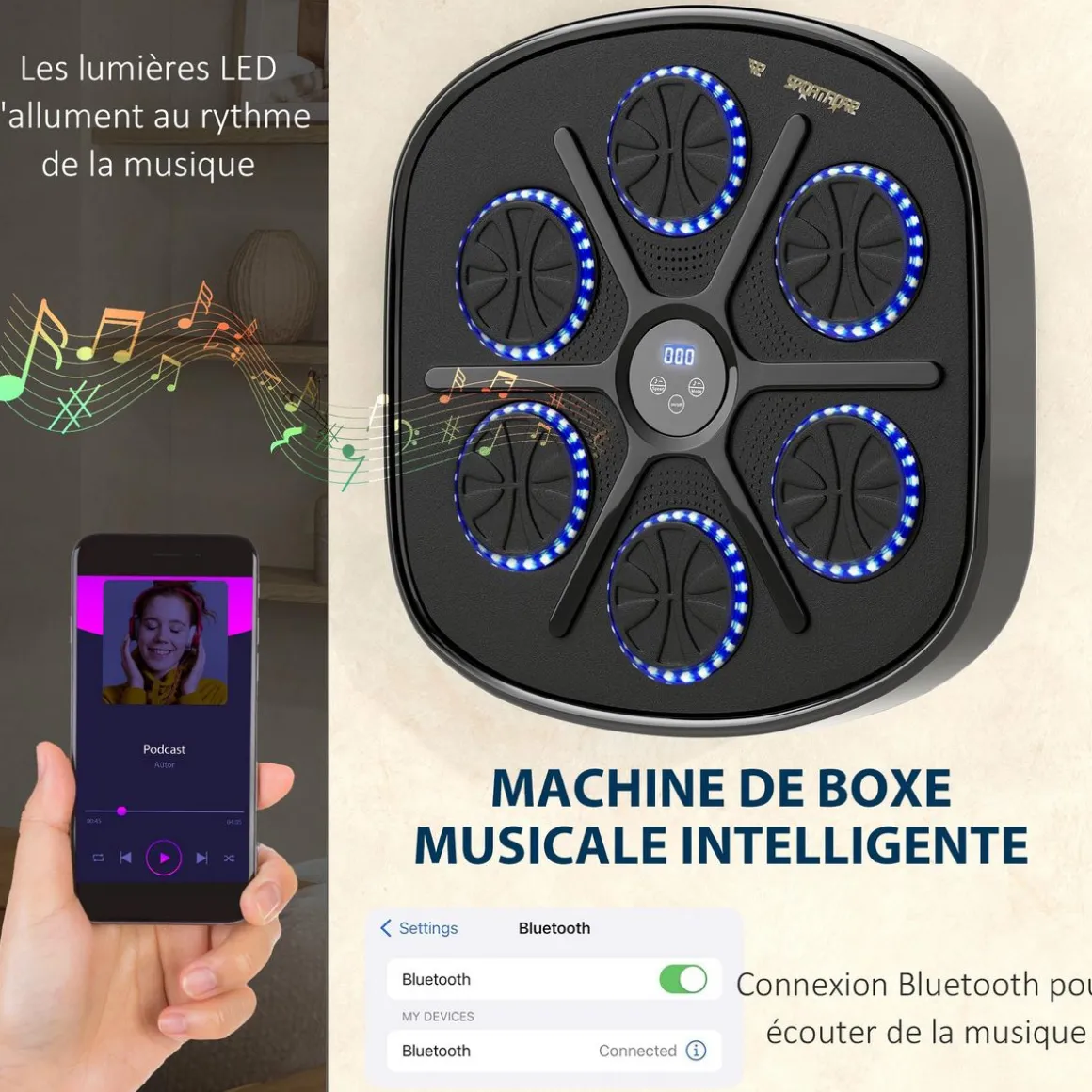 – Le Bluetooth de la machine à boxe musicale diffuse des morceaux dynamisants, avec volume réglable