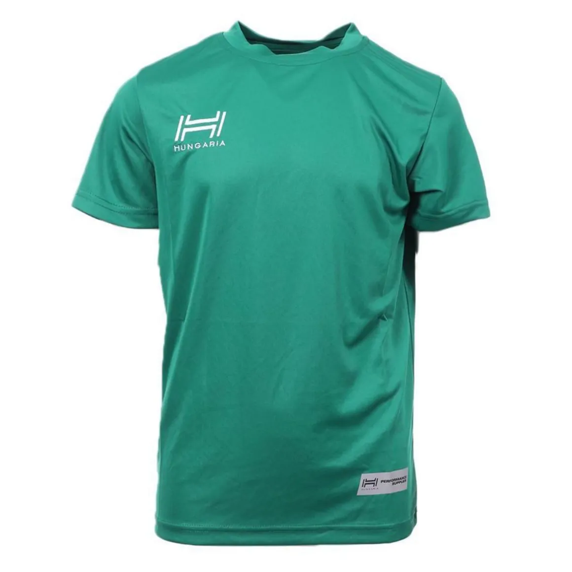 N’attendez plus pour commander ce maillot de foot signé Hungaria ! Couleur : Vert Col rond Manches courtes Logo Hungaria sur la poitrine Composition : 100% polyester Ce modèle est disponible en plusieurs couleurs, alors foncez !