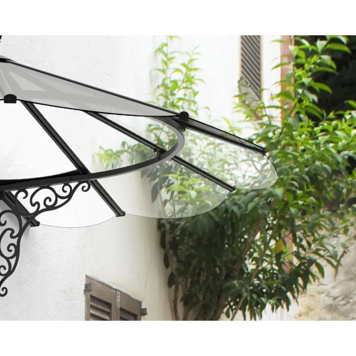 Pro?lés en aluminium très résistants, supports en acier galvanisé, ?nitions ornements laqués, complétés par de solides panneaux de toit ; une marquise parfaite pour une protection optimale pendant de nombreuses années.