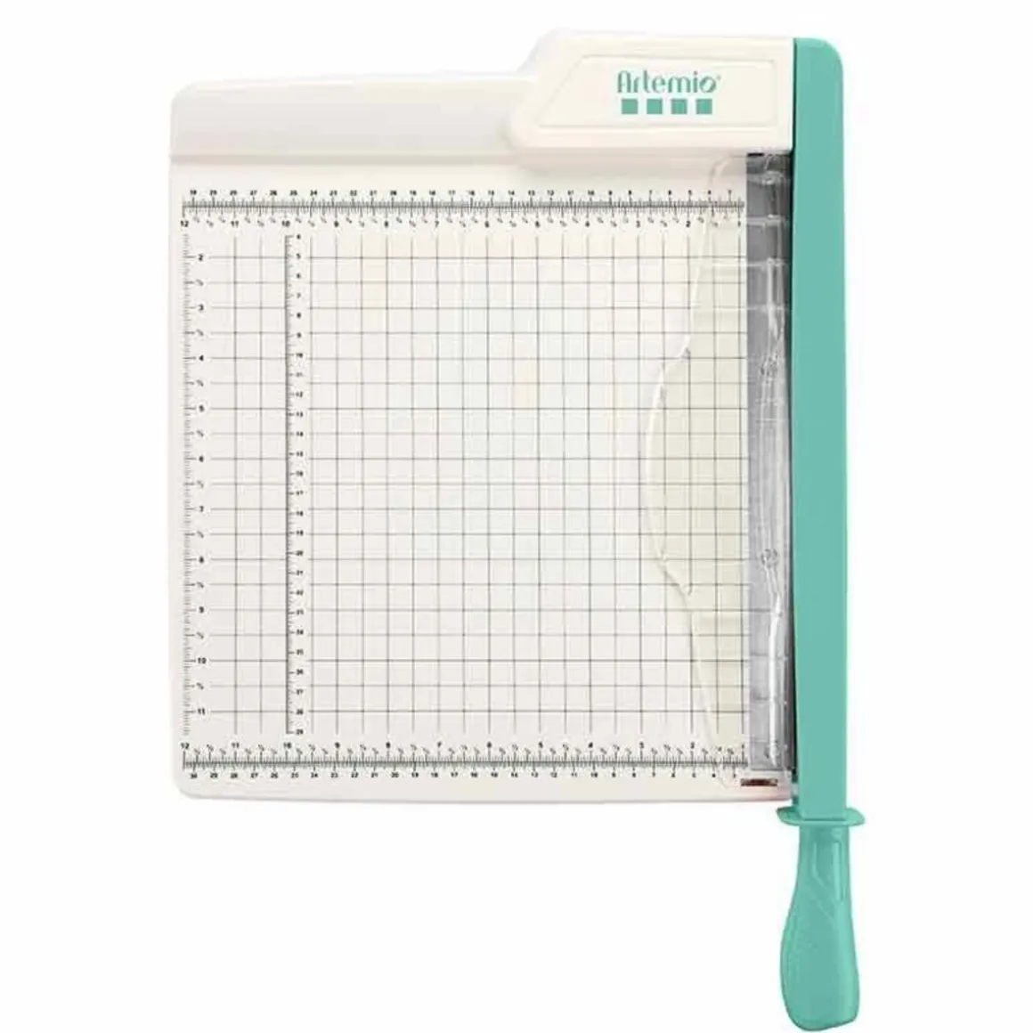 Massicot guillotine mesurant 43 x 35 x 6 cm servant à découper jusqu’à 12 papiers 30×30 en même temps disposant d’un verrou de sécurité, c’est un outil idéal pour vos projets de scrapbooking et de carterie