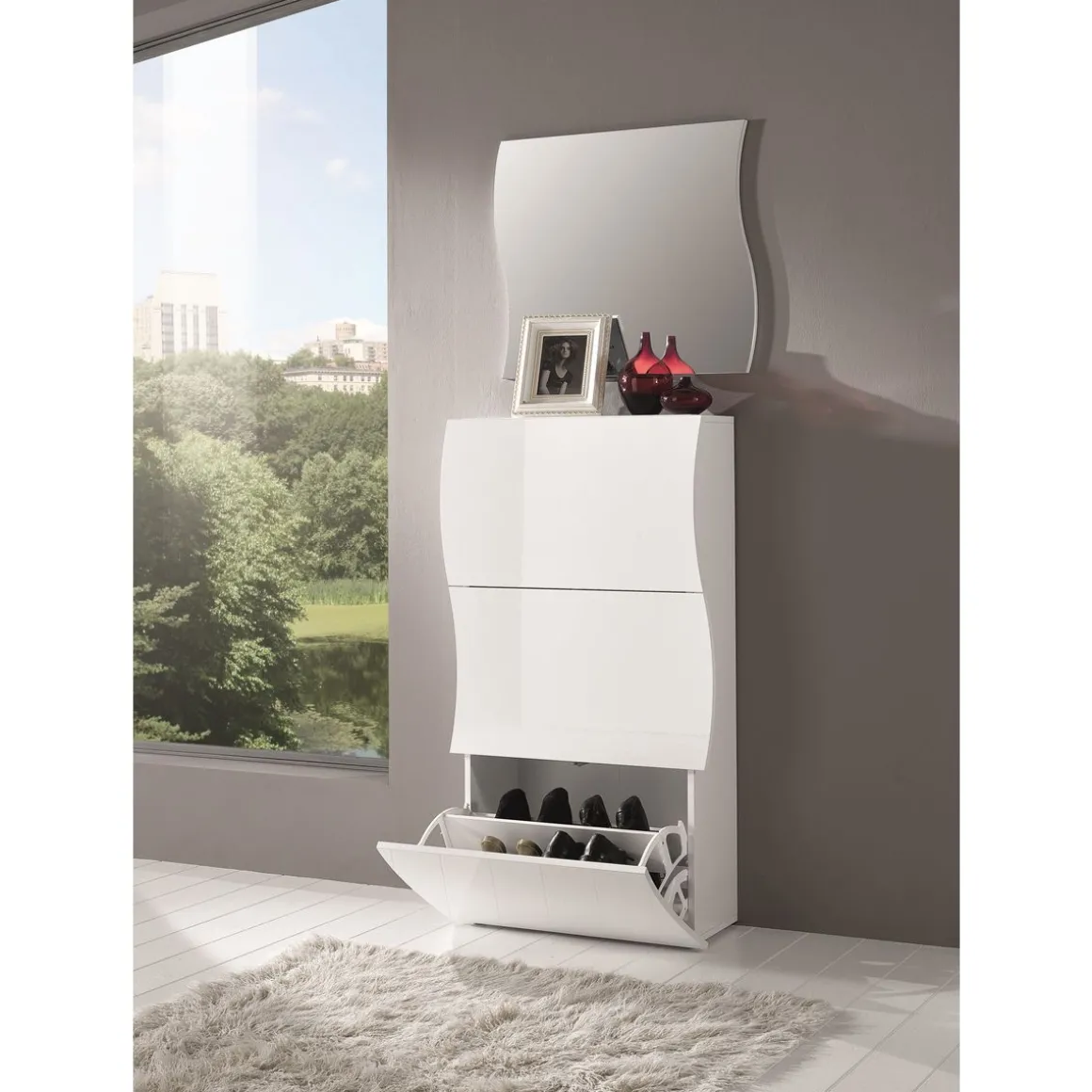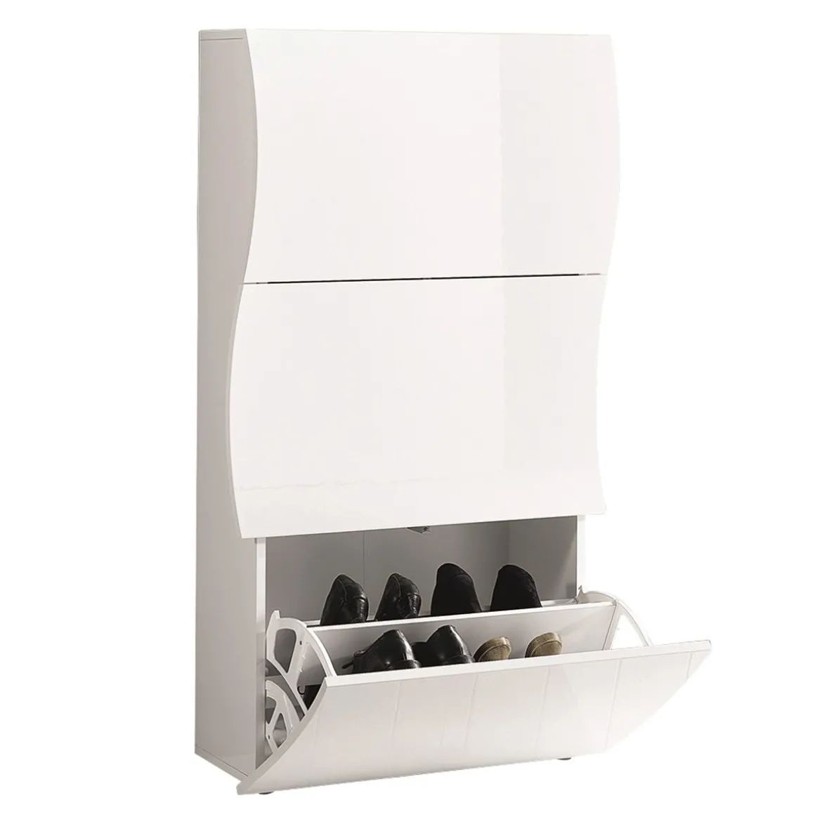 Meuble à chaussures 3 portes abattants avec une structure en panneaux de particules en melamine laqué ép 16 mm.