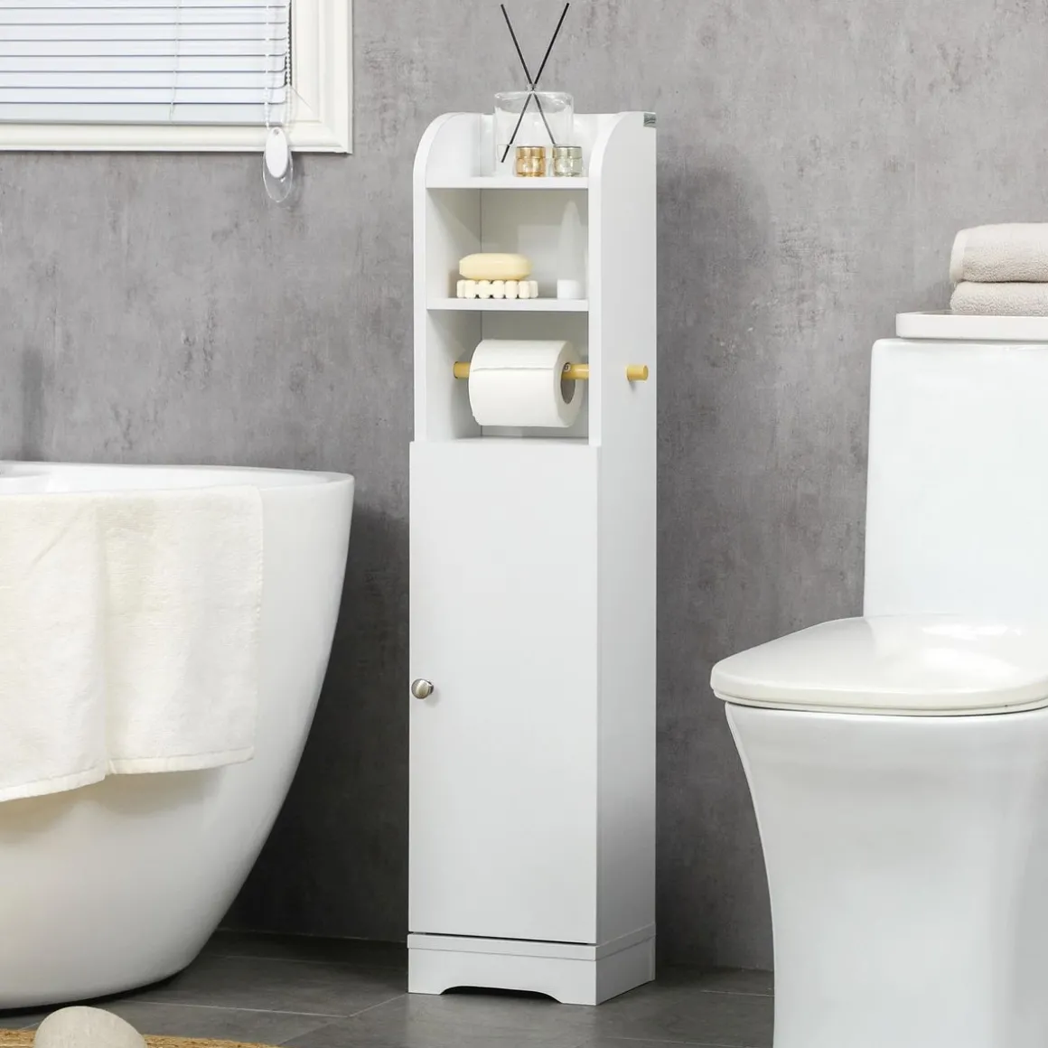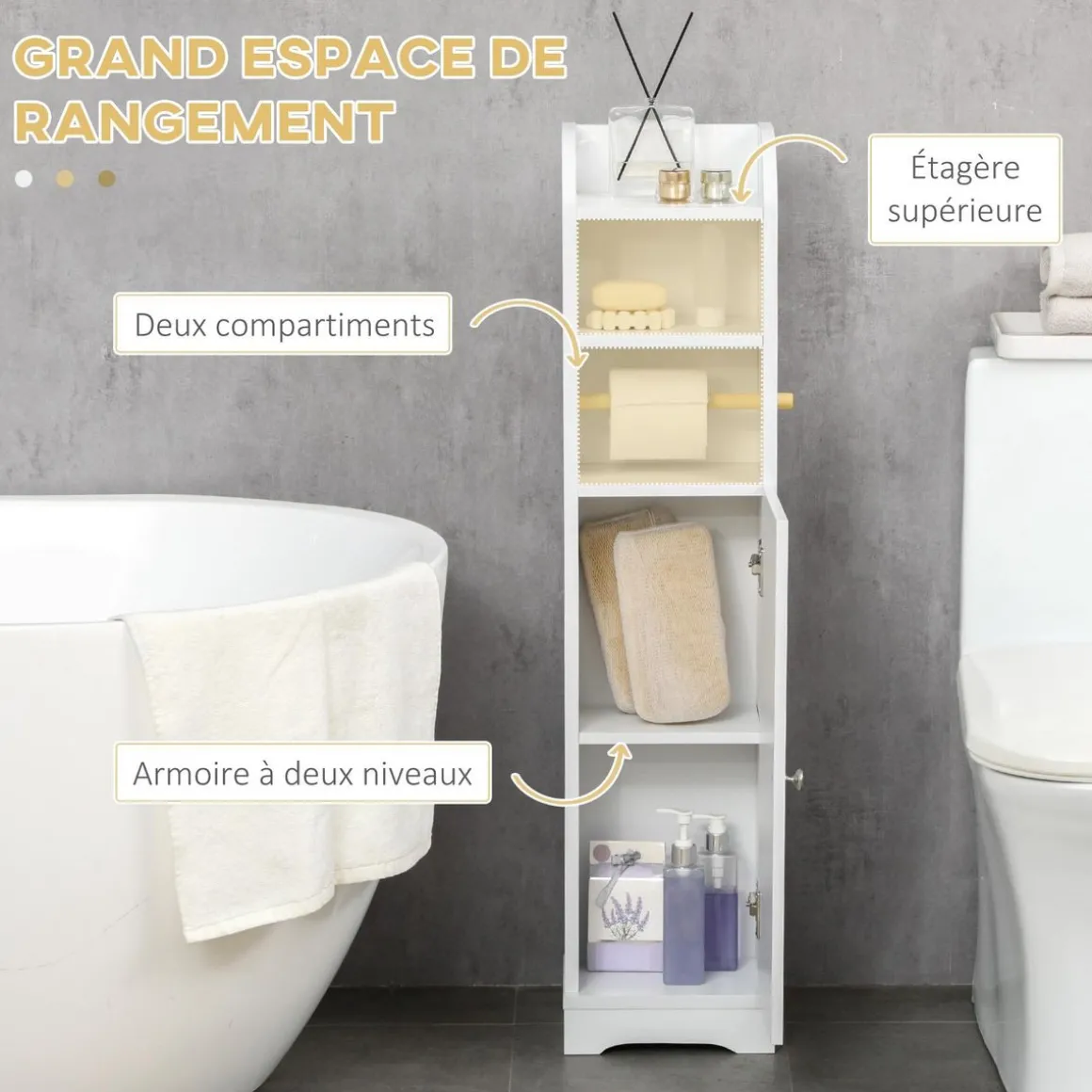 – Meuble porte-papier toilette colonne style épuré et élégant