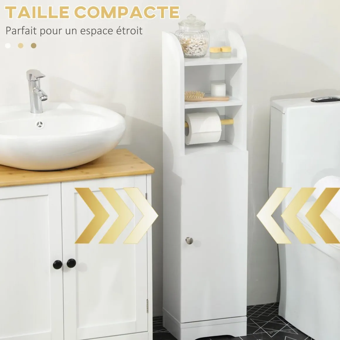 – Compact, ce meuble porte-papier toilette optimise l’aménagement du petit espace de toilette