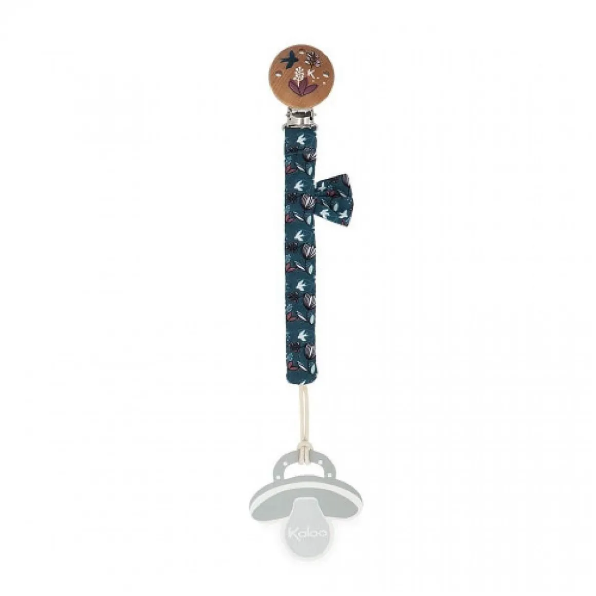 Cette jolie attache-tétine Kaloo de 17,5cm en double matière, dont un côté en gaze de coton, sera parfaite pour un cadeau de naissance doux et raffiné. Avec son accroche en bois délicatement imprimé au coloris nature, elle accompagne bébé partout où il va. Son imprimé Nature lui donne une touche délicate.