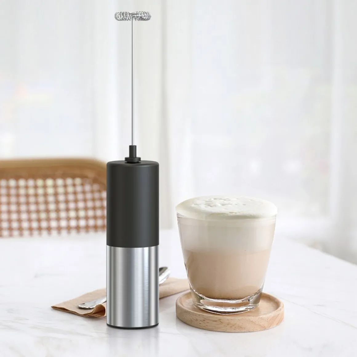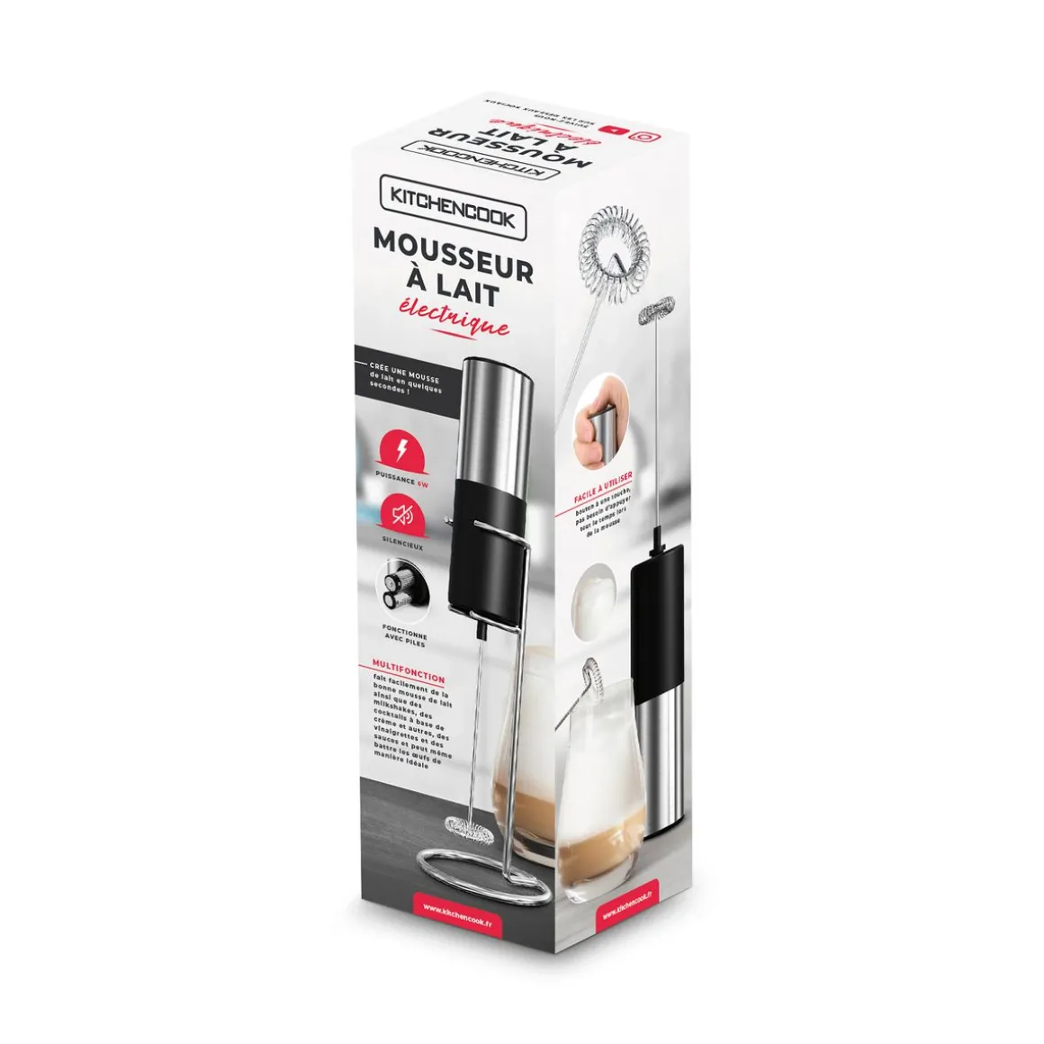 - Multifonction : fait facilement de la bonne mousse de lait, de chocolat, de matcha, des cocktails à base de crème et autres, des vinaigrettes et sauces salées ou sucrées et peut même battre les œufs pour une omelette onctueuse