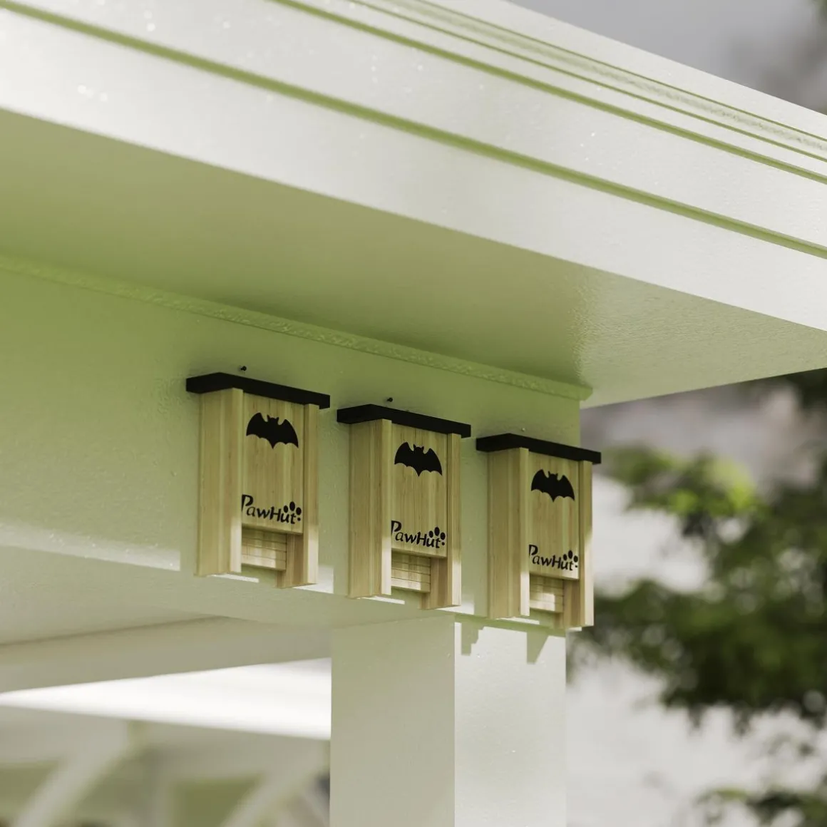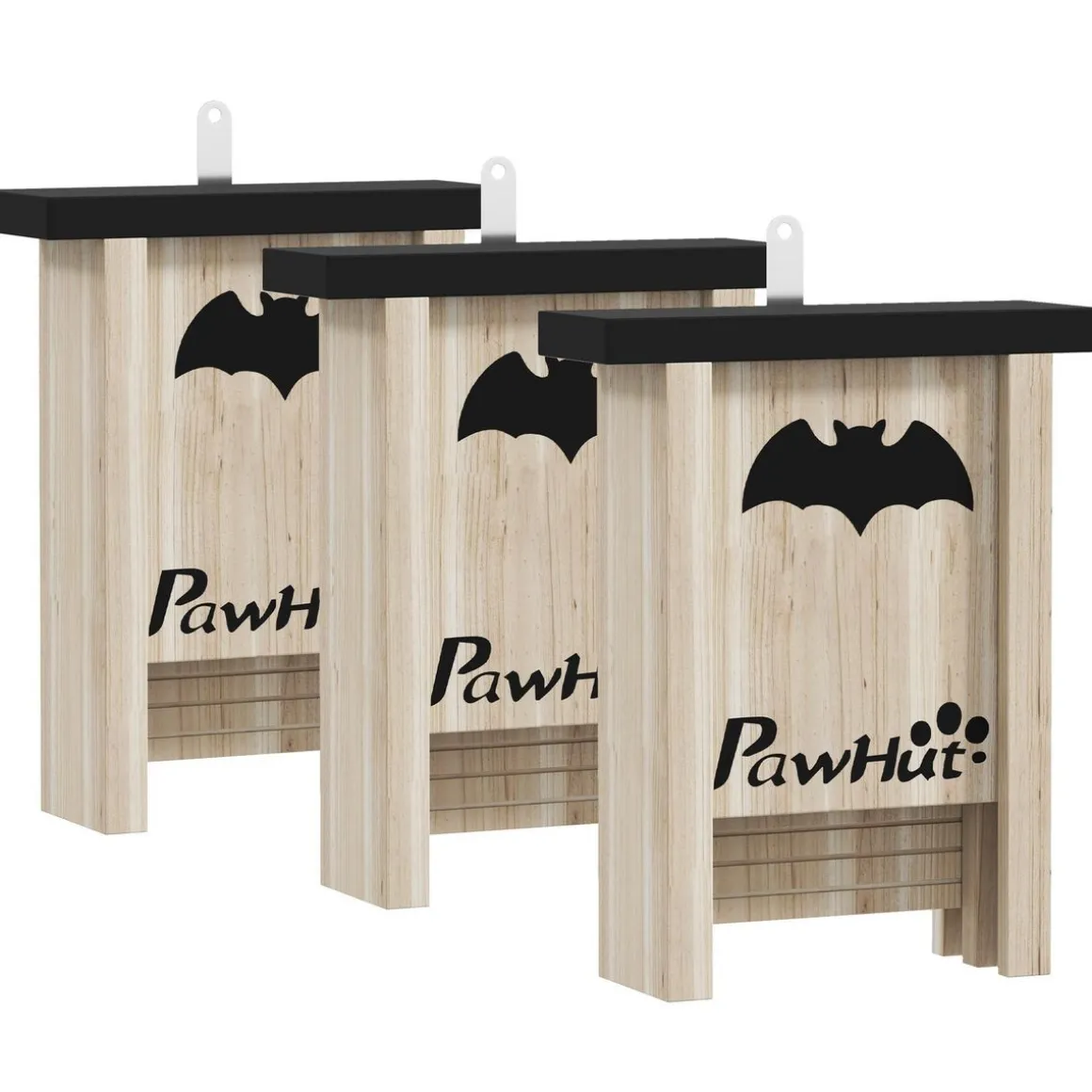 – Ensemble de 3 nichoirs à chauves-souris, chacun orné d’un motif de chauve-souris