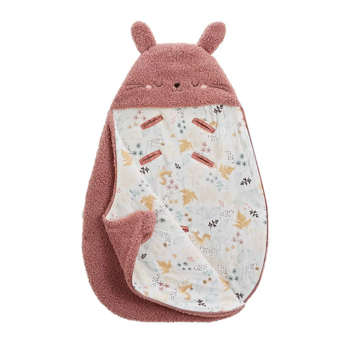 Un nid d’ange qui permet de balader bébé chaudement pendant les promenades. En sherpa tout doux et rose, il est superbe et ne peut que vous plaire. On notera le côté pratique des ouvertures dans le dos pour passer les sangles du siège auto, de la poussette ou du cosy : un atout pour la sécurité de bébé. Produit labellisé STANDARD 100 by OEKO-TEX ® (BJ020 189402 TESTEX) Le nid d’ange est conçu pour une utilisation en extérieur uniquement, il est idéal pour garder bébé au chaud lors de toutes les balades Un adorable visage avec ses petites oreilles Tout en sherpa et doublure intérieure en coton élasthanne Pour plus d’informations, voir les avertissements et recommandations dans l’onglet détails et entretien