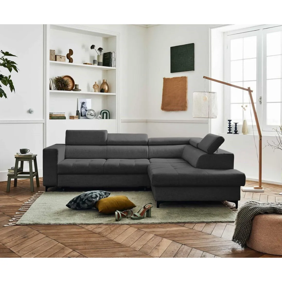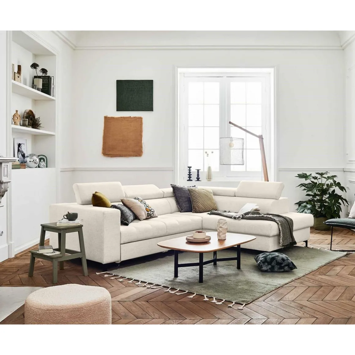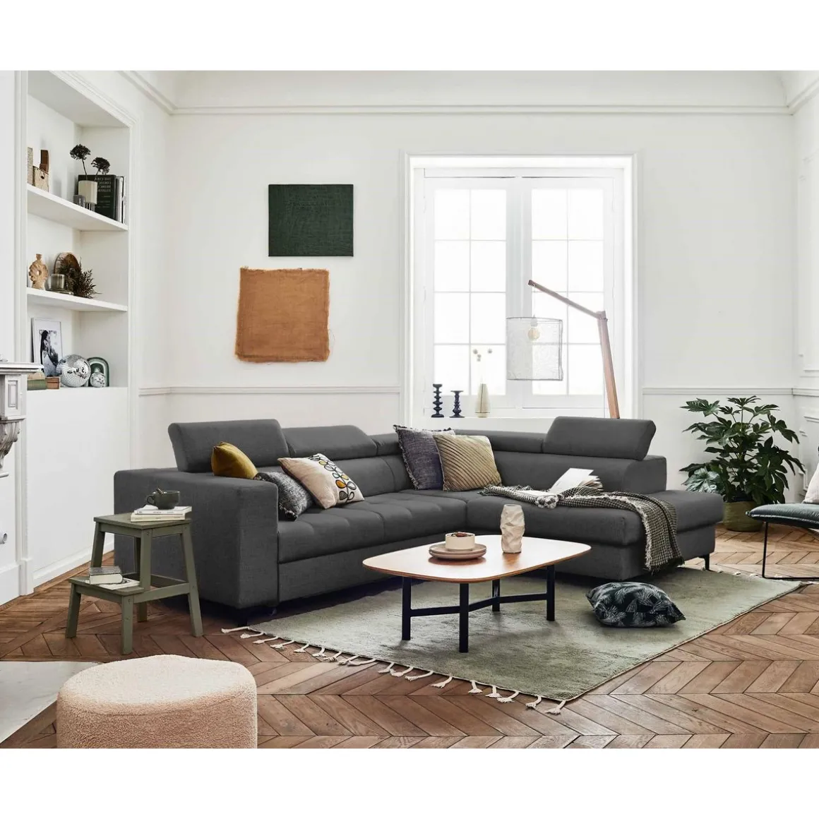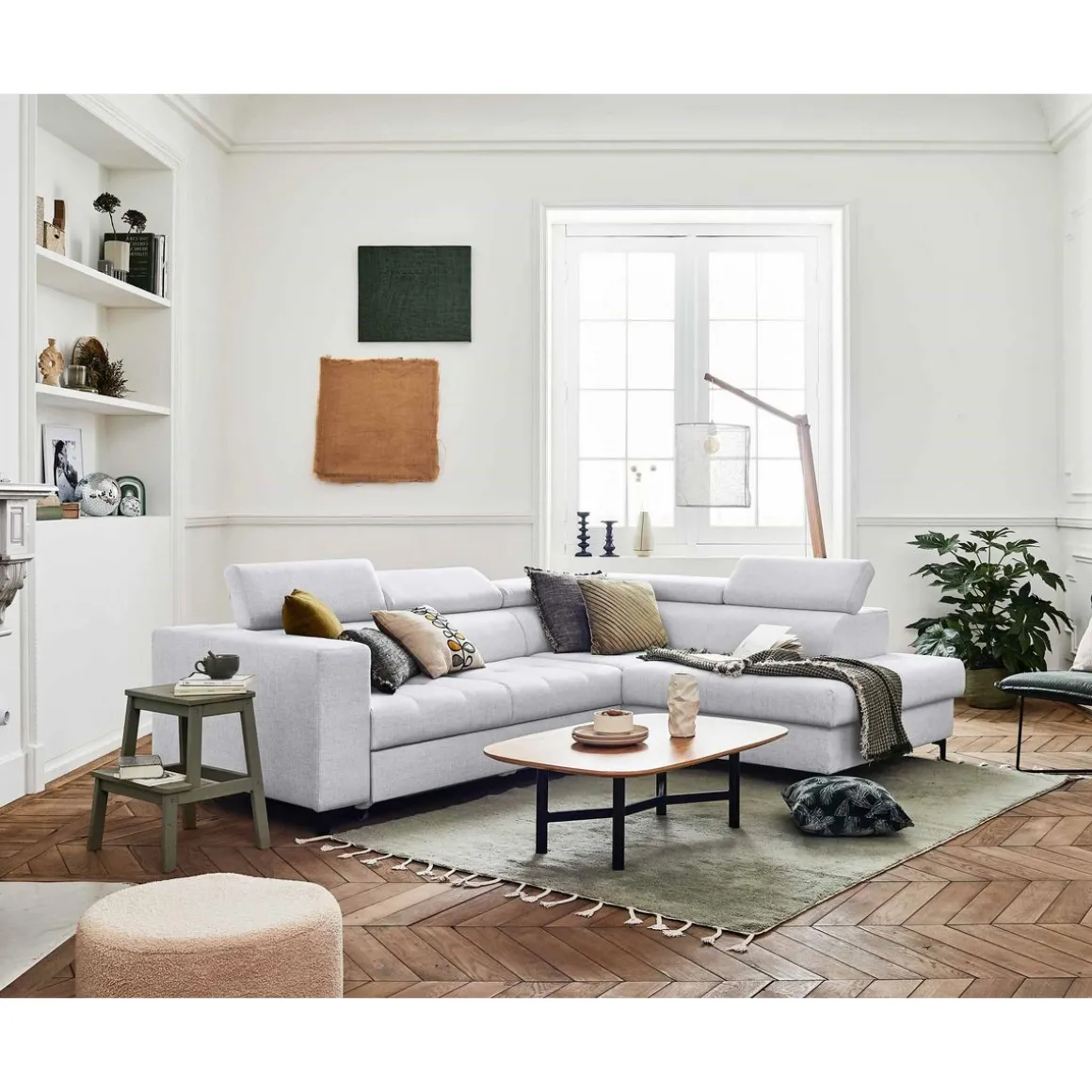 Le canapé d’angle 5 places Olinda rendra chaque instant de votre journée plus agréable. En commençant par le café du matin et en terminant par le thé chaud du soir. Ce canapé au revêtement en tissu capitonné et aux dimensions généreuses est idéal pour les grands espaces. Ses 5 places vous permettront de recevoir vos proches pour des moments de convivialité.