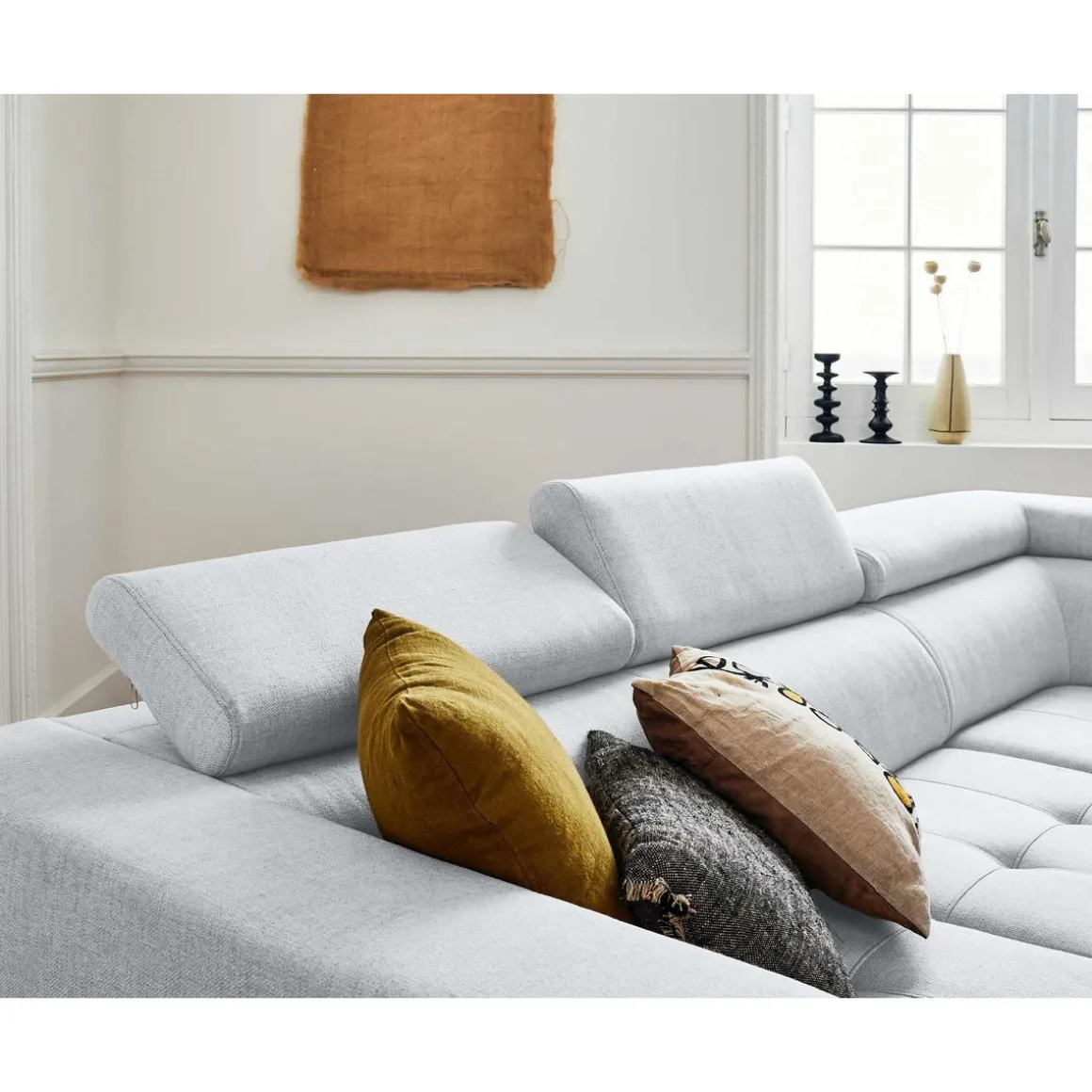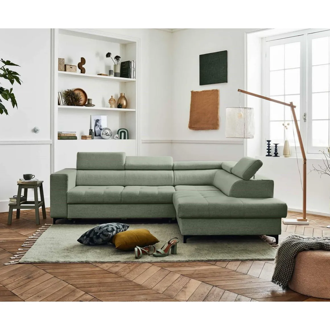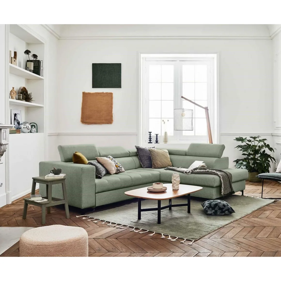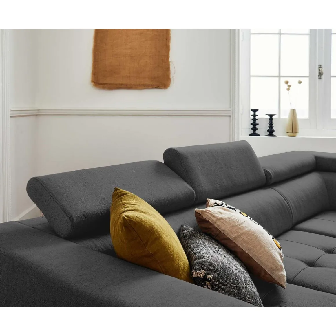 Le canapé d’angle 5 places Olinda rendra chaque instant de votre journée plus agréable. En commençant par le café du matin et en terminant par le thé chaud du soir. Ce canapé au revêtement en tissu capitonné et aux dimensions généreuses est idéal pour les grands espaces. Ses 5 places vous permettront de recevoir vos proches pour des moments de convivialité.