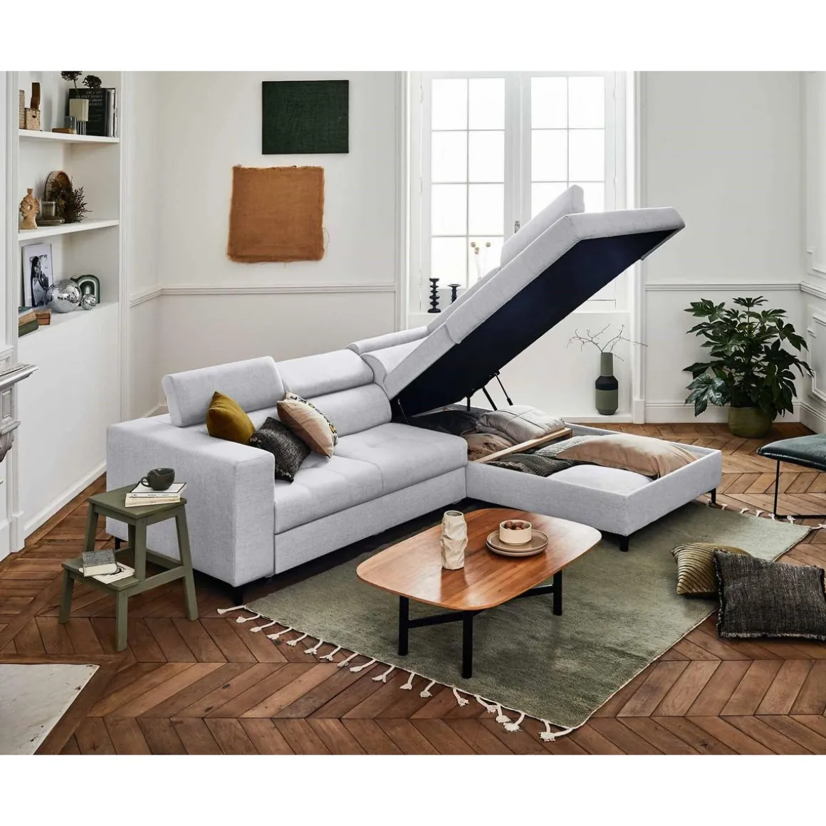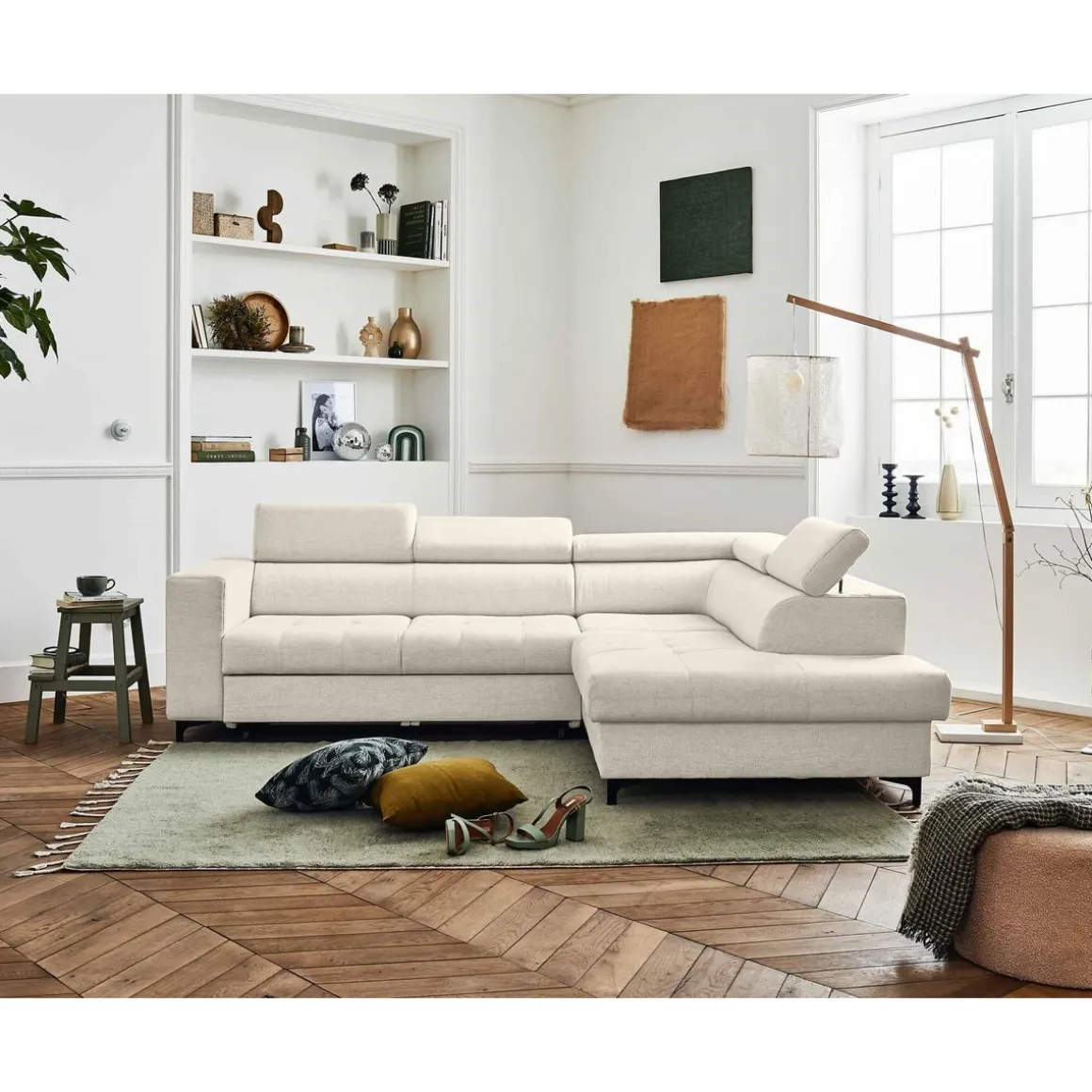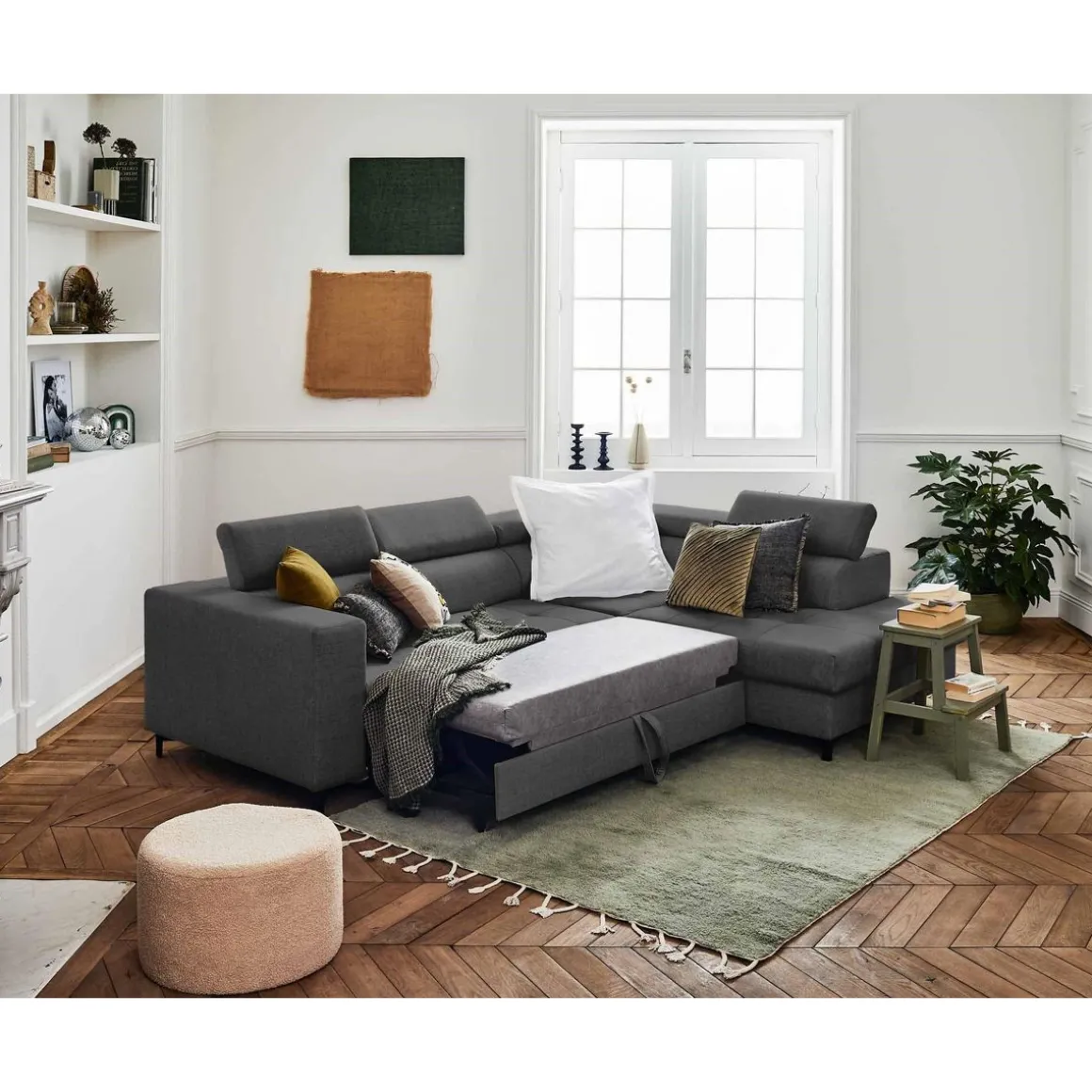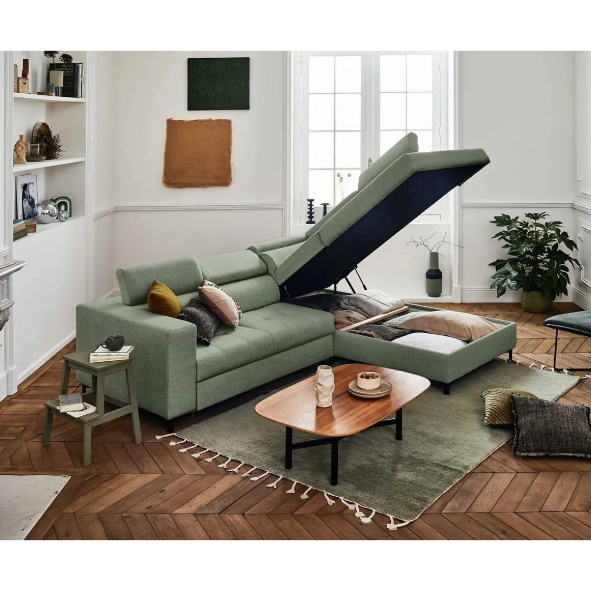 Le canapé d’angle 5 places Olinda rendra chaque instant de votre journée plus agréable. En commençant par le café du matin et en terminant par le thé chaud du soir. Ce canapé au revêtement en tissu capitonné et aux dimensions généreuses est idéal pour les grands espaces. Ses 5 places vous permettront de recevoir vos proches pour des moments de convivialité.