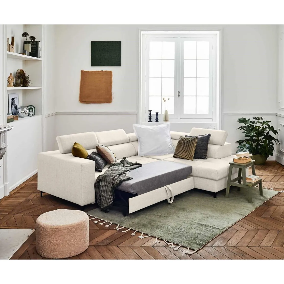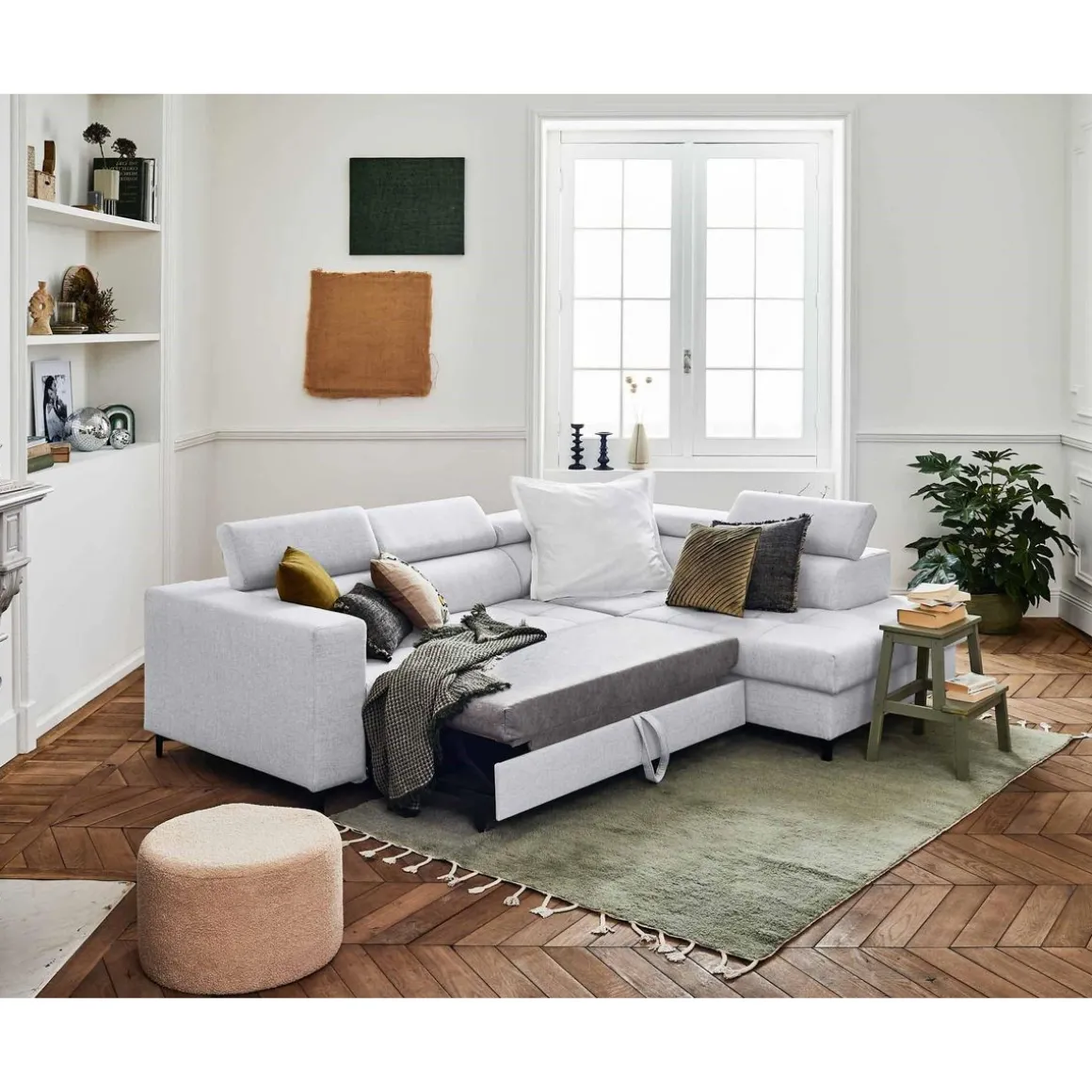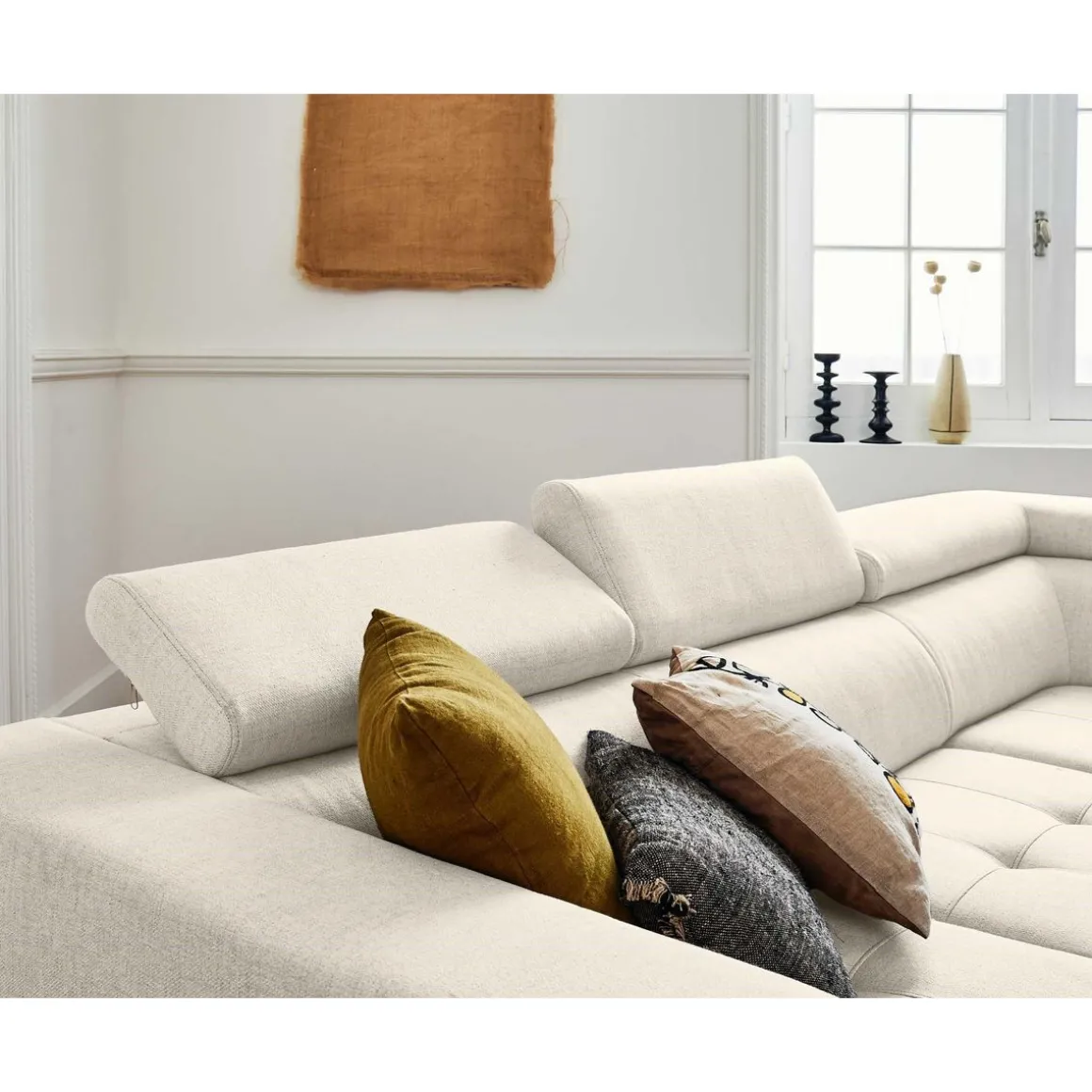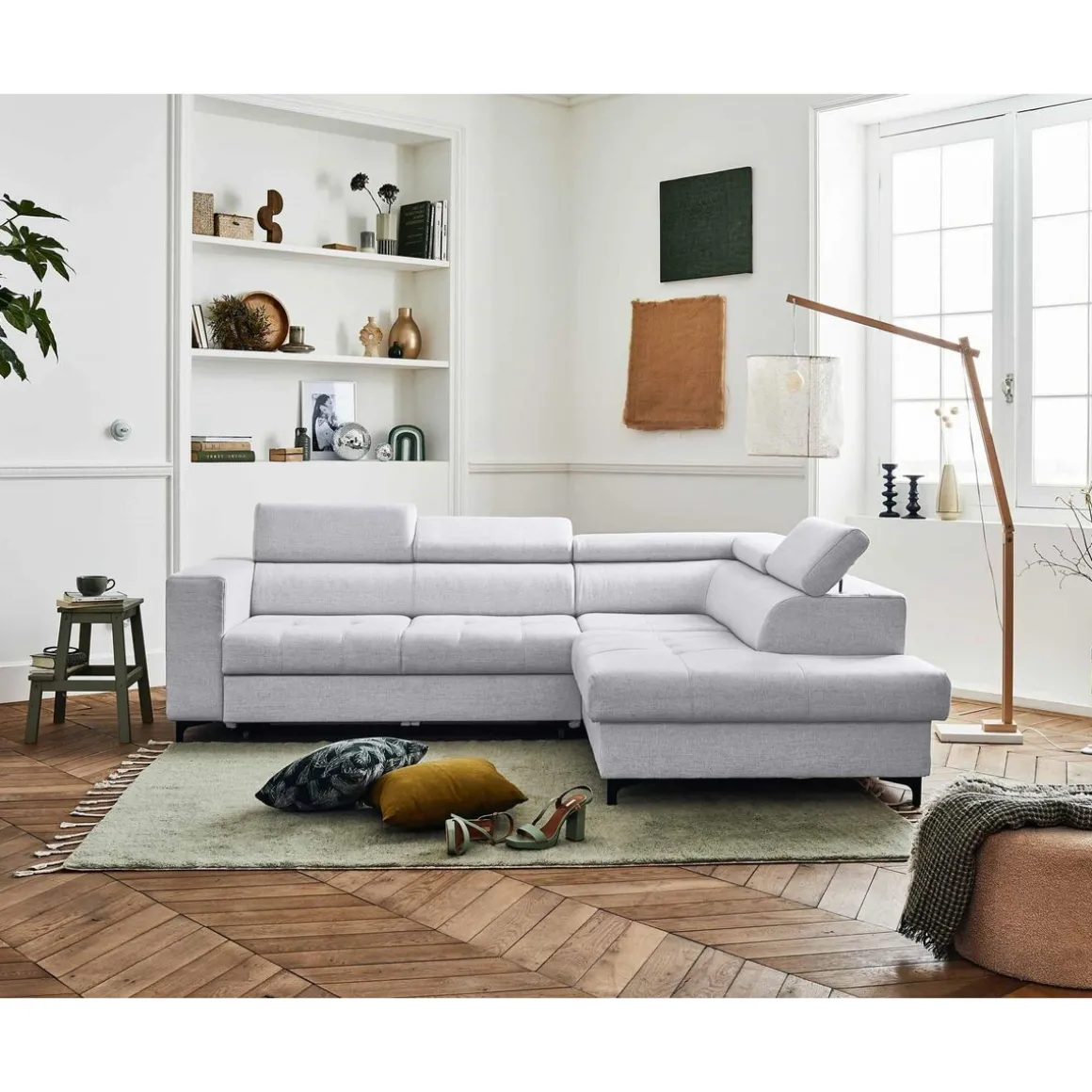 Le canapé d’angle 5 places Olinda rendra chaque instant de votre journée plus agréable. En commençant par le café du matin et en terminant par le thé chaud du soir. Ce canapé au revêtement en tissu capitonné et aux dimensions généreuses est idéal pour les grands espaces. Ses 5 places vous permettront de recevoir vos proches pour des moments de convivialité.